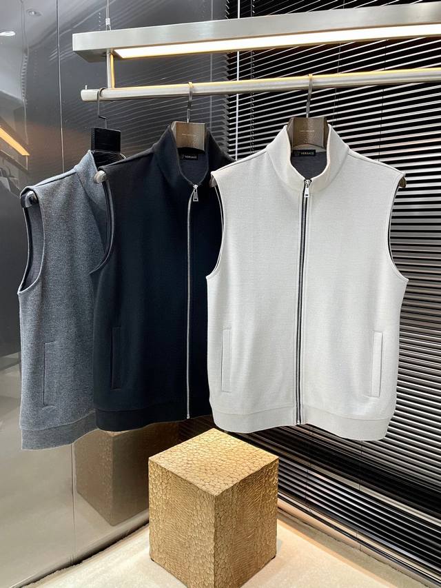 Versace - Versace 2025 Fall New Arrivals. This minimalist, fashionable vest is made from imported, high-quality wool and acrylic fabric. The drape and sheen are truly uplifting, adding a youthful vibe. The stitching is neat and smooth, and all hardware and accessories are custom-supplied. The fabric is custom-woven, with no flaws or flaws. This vest is practical and practical for everyday wear. Available in sizes M-3Xl