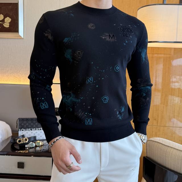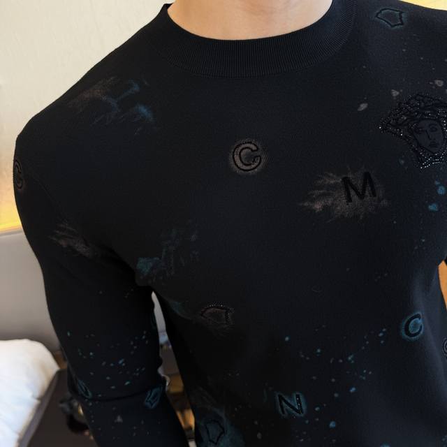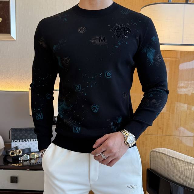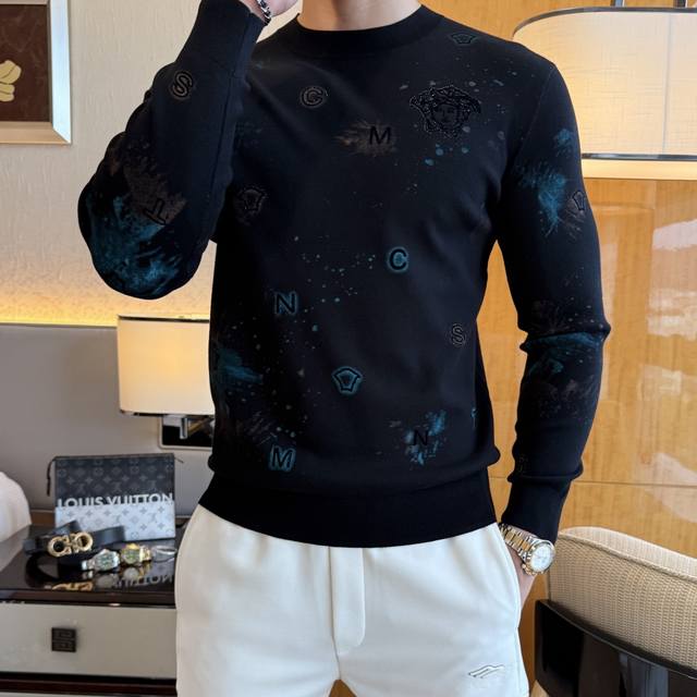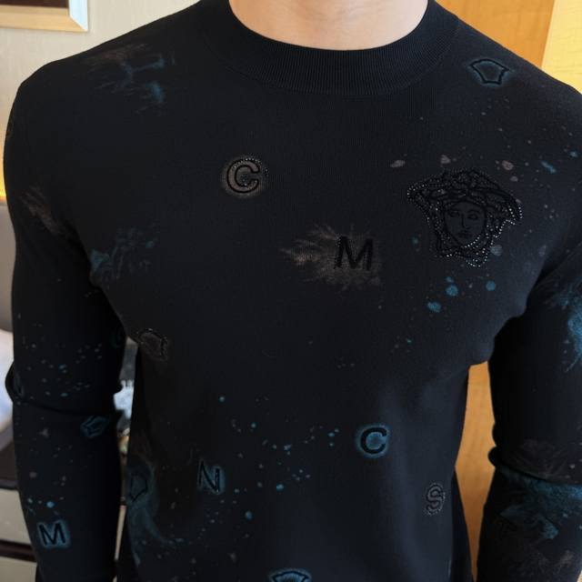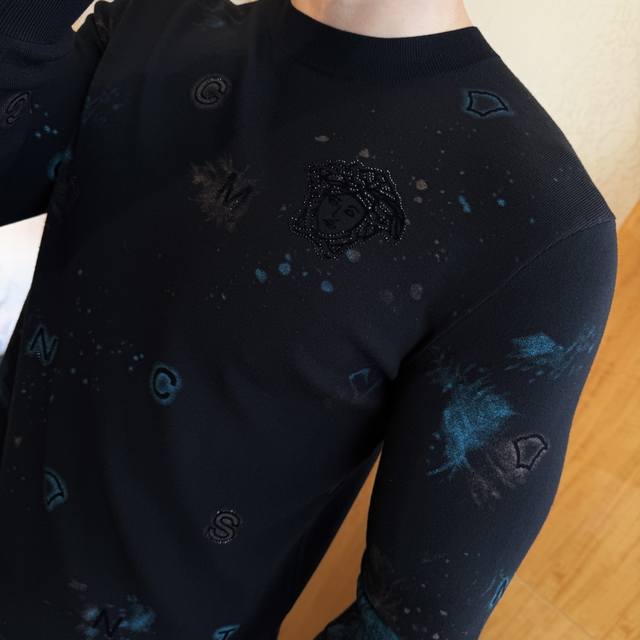 Versace's Autumn/Winter 2025 collection is a must-have knitted sweater, a stylish and casual outerwear piece. Made from a custom imported wool blend, this sweater is incredibly comfortable and snug, and features a comfortable, warm fit. The unique Versace logo design is a true original, boasting the highest quality and craftsmanship on the market. This top-tier, original sweater is incredibly soft, crisp, and durable, yet retains its shape. The hemming and seams are meticulously crafted to perfection, meeting the highest standards of top-tier manufacturing! Don't miss this, my dear men! Available in sizes M-3Xl