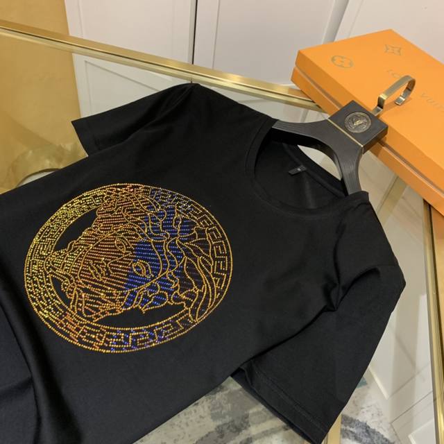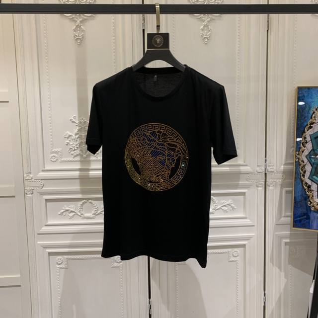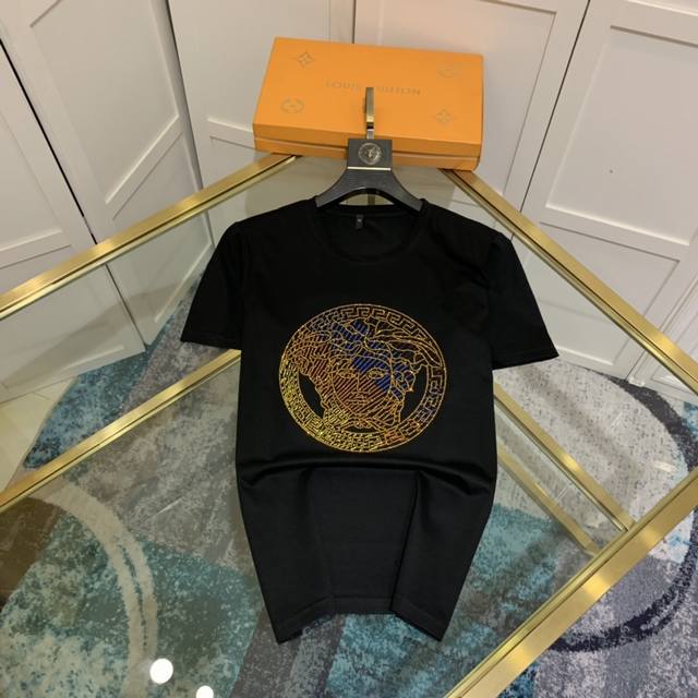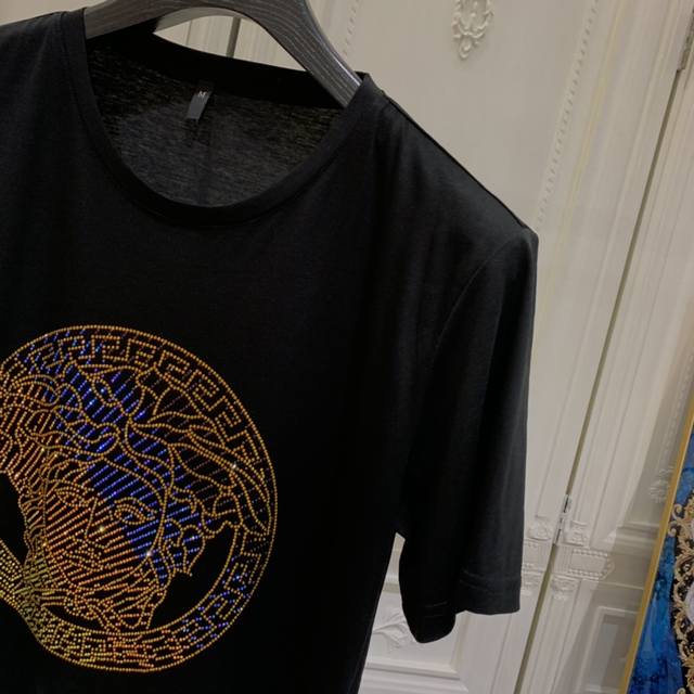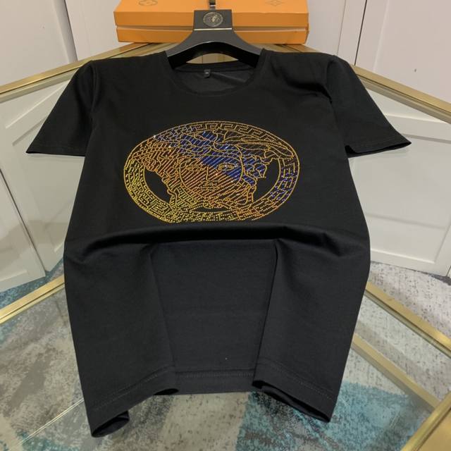 Versace's early spring official website synchronized new models for sale first time men's high-end round neck short-sleeved T-shirt original custom fabrics high-quality hot diamond logo design soft and comfortable natural breathable base or wear alone can be exclusive sale first, if you like it, hurry up to buy it! Purchasing quality! Size: S-6Xl can be worn up to 250 pounds,