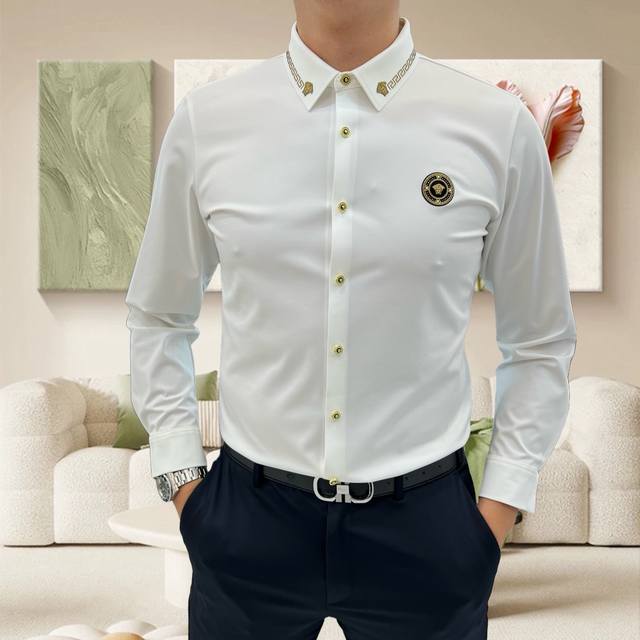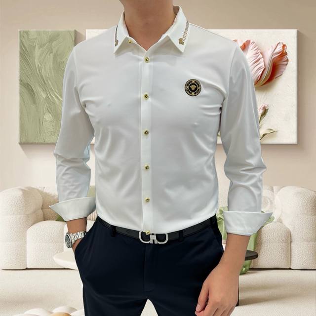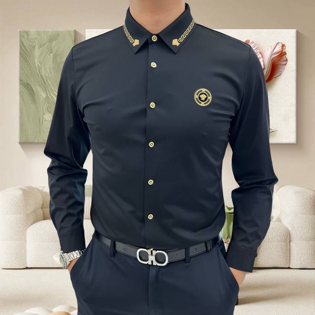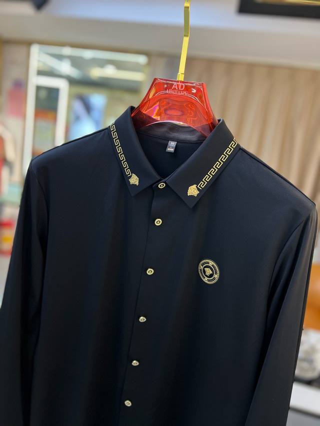 Versace's high-end casual collection! 2025 Early Fall new arrival, a casual long-sleeved shirt from the Versace store! Featuring the brand's latest logo design and seamless tailoring, this piece is made from imported 80s cotton, offering a smooth, comfortable feel, excellent elasticity, and a soft, delicate texture that resists pilling. This stylish, timeless piece is stylish and stylish, and it's incredibly comfortable and stylish. A must-have for the successful man! Sizes: M-4Xl, 178 (140 lbs), L (slim fit), and up to 200 lbs (