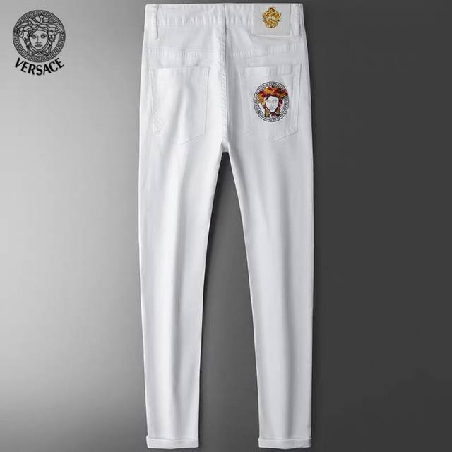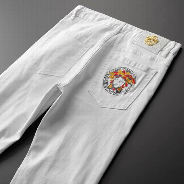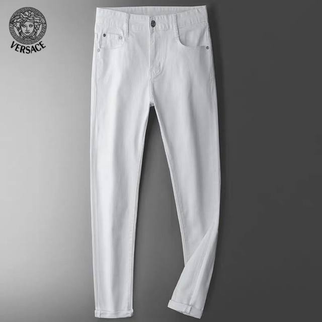 Versace's latest high-end, custom-made jeans are minimalist, creating a refreshingly modern stay! Made from fresh, high-quality imported fabric, they're comfortable, breathable, smooth, and crisp, and they resist pilling. The stitching is meticulously detailed. Extremely comfortable, understated yet luxurious, they look incredibly classy. The silhouette and cut are self-explanatory, creating a truly refined look. These truly legendary jeans are perfect for everyone, and they're incredibly stylish and luxurious! Sizes: 28-36