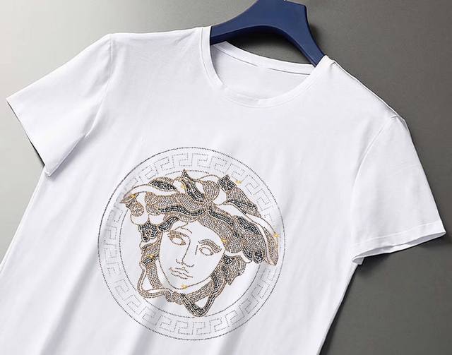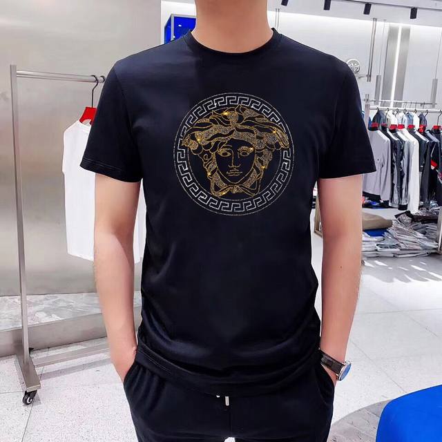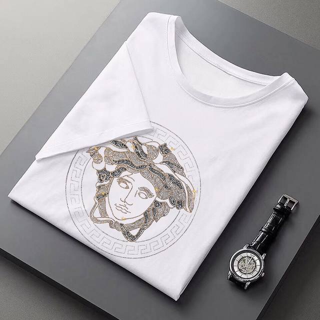 Versace's latest rhinestone short-sleeved crew neck T-shirt (M-4Xl) is a premiu