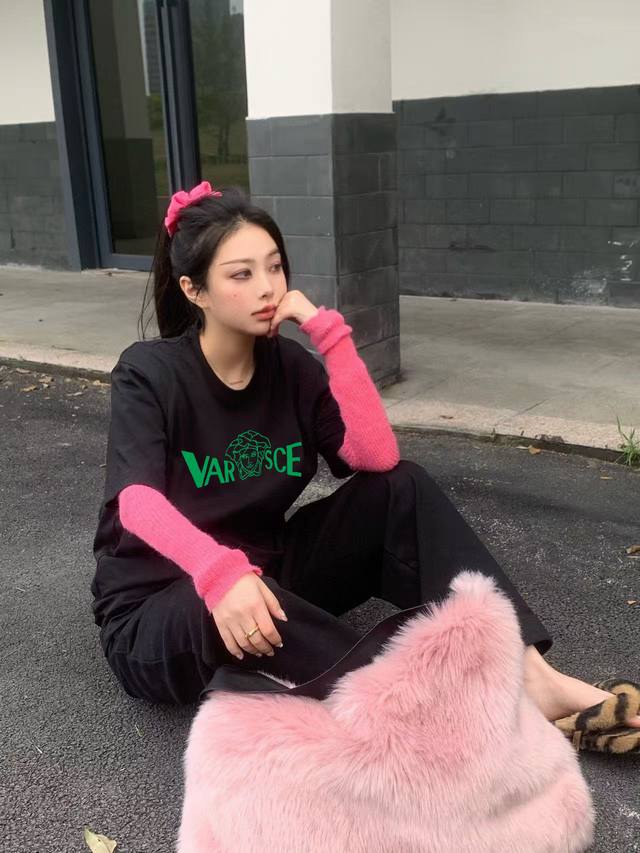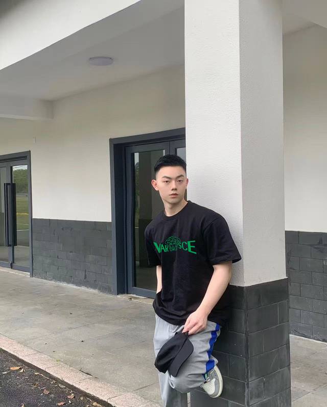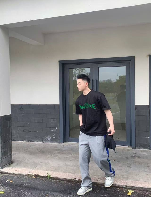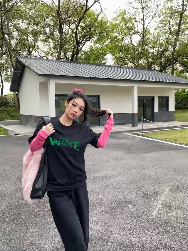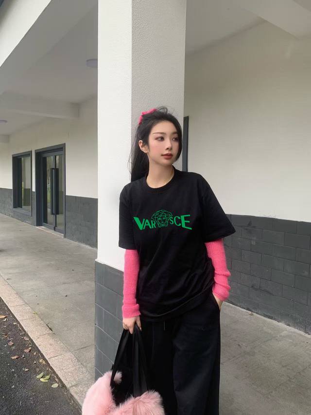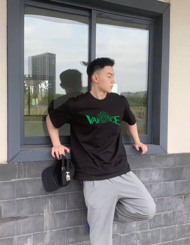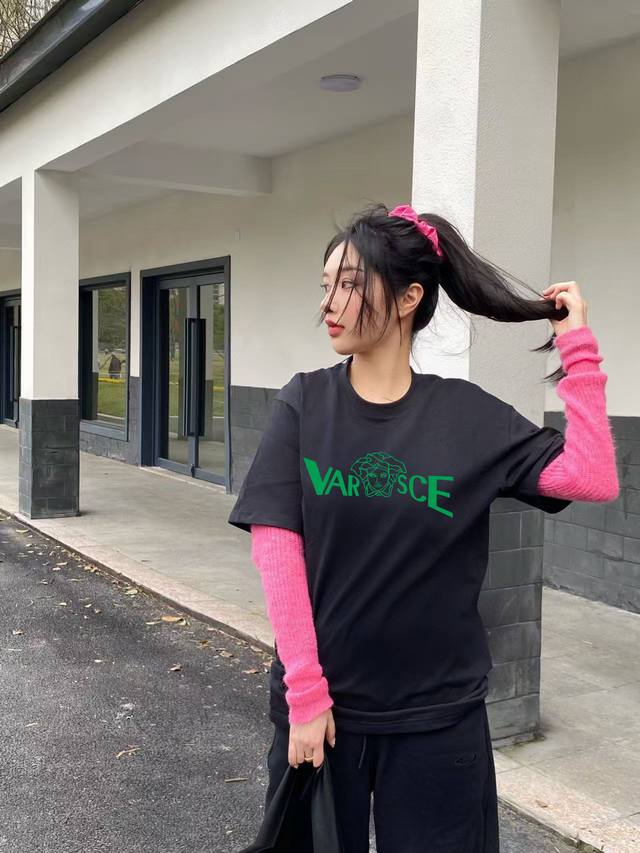 Versace's new double-layer, heavily-printed, letter-printed short-sleeved T-shir
