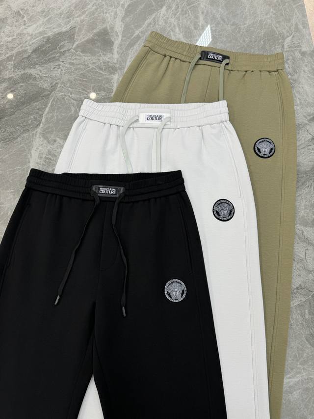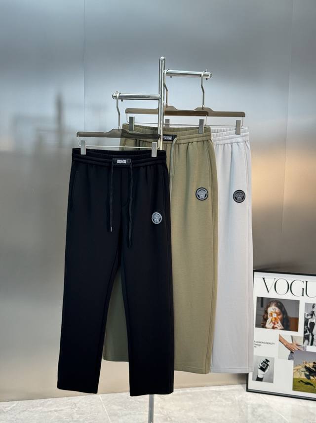 Versac*Versace 25S new straight trousers. Simple and basic yet luxurious combination. Decorated with leather brand logo stickers on the waistband. Classic Medusa shape under the pocket. Flocking technology. Made of customized cotton fabric, skin-friendly and breathable. Anti-wrinkle, non-sticky, anti-static, soft, comfortable and drapey. Stands up and looks stylish! Slightly wide straight design, three-dimensional cutting design of the trousers lengthens the leg lines, makes you look taller and thinner. Elastic waistband design, free to retract, suitable for various shapes. Original custom drawstring. Highly recognizable. A pair of casual pants suitable for a variety of occasions, the upper body is absolutely stunning. Three standards are complete! Color: black, khaki, light gray. Size: M-3Xl 175 140 catties recommended L