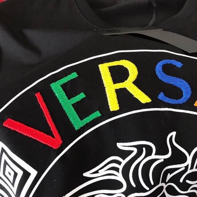 Vs Versace 20Ss Spring/Summer new Medusa embroidered Logo short Tee 3D high-defi