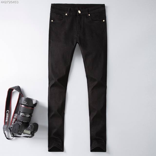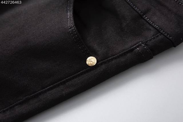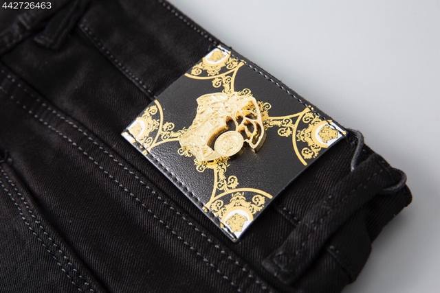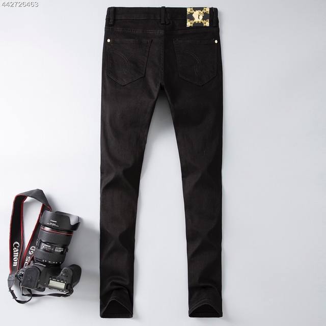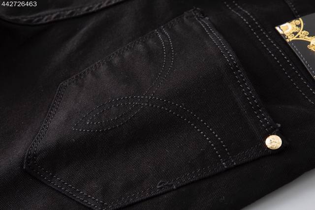 2680 Early Spring New Jeans Item No.: N651- Brand: Versace Color: Black Size: 28-38 (excluding 35 and 37) Description: New autumn/winter style original jeans! Italian luxury men's jeans made with imported washed denim, exquisite boutique hardware, top-quality genuine leather, first-class washing process, Ykk brand-exclusive zipper, men's stretch slim-fit straight leg jeans, simple and versatile.