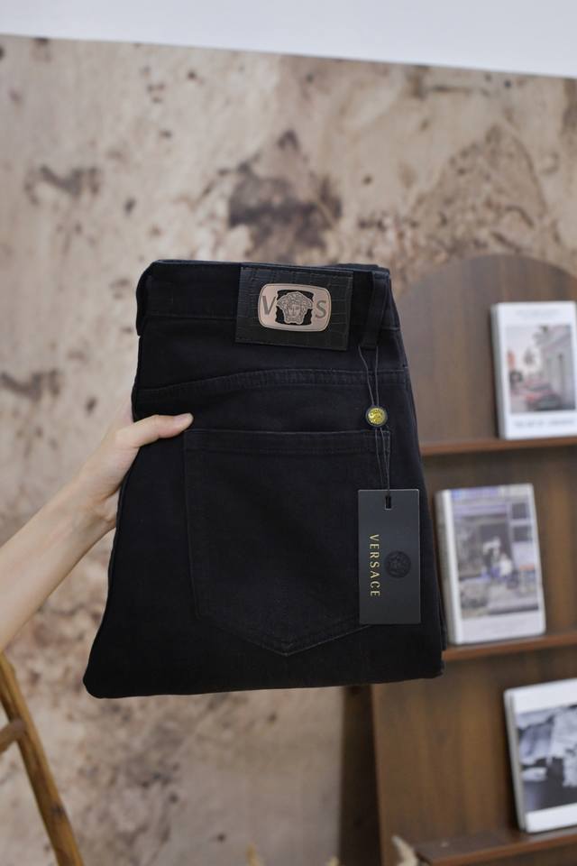 925# A hot-selling Versace 25Ss Fall/Winter new arrival, Versace jeans, cotton straight-leg trousers with visible stitching, men's casual trousers adorned with metal button logo. A top-tier order from a prestigious company, this is an absolutely meticulously crafted, high-end piece, presenting an oversized, square silhouette, injecting a modern twist into a classic wardrobe. The contrasting stitching between the metal buttons and genuine leather waist tag exudes modern charm. A product crafted to perfection in every detail and workmanship, a must-have for trendy men!! It elevates the overall style and sophistication, aligning with current fashion aesthetics, and offering a superb sense of brand identity and style! Sizes: 38-38 35.37