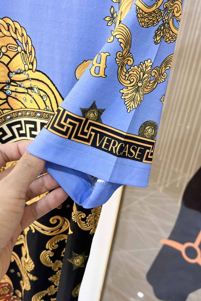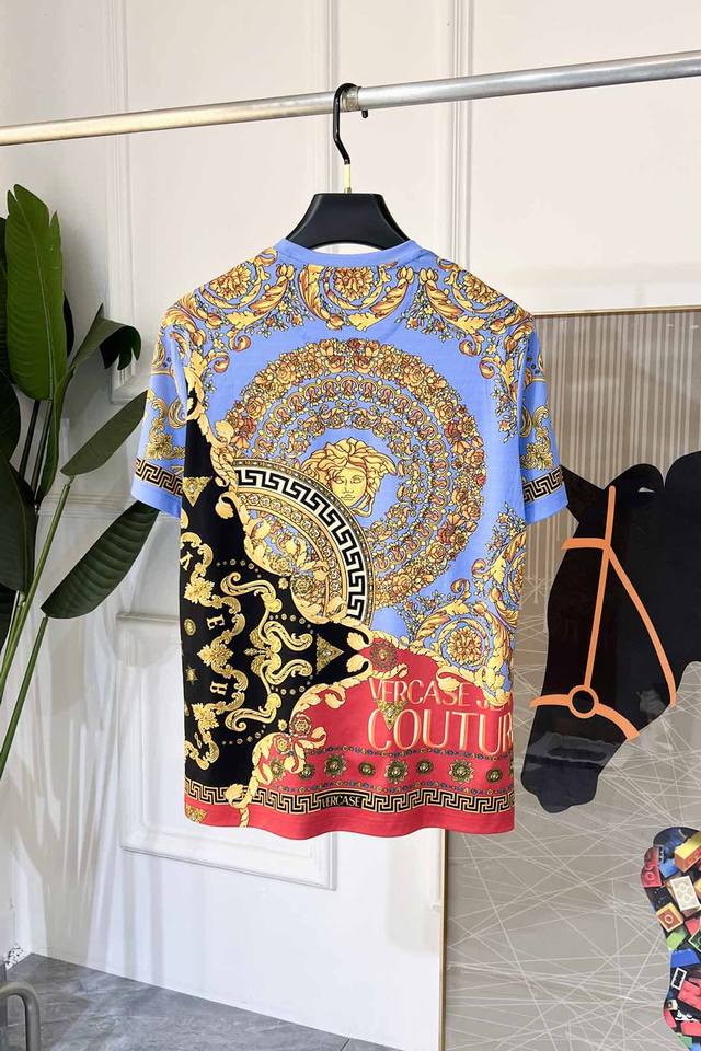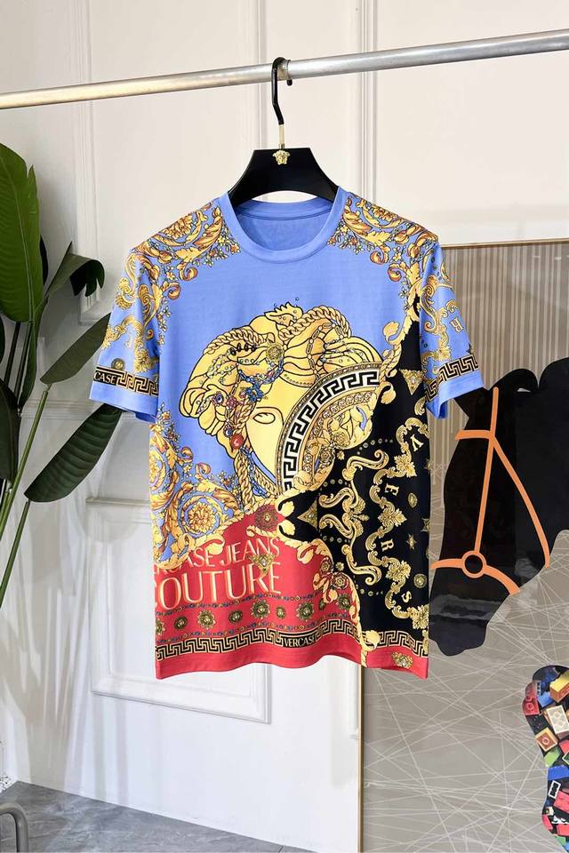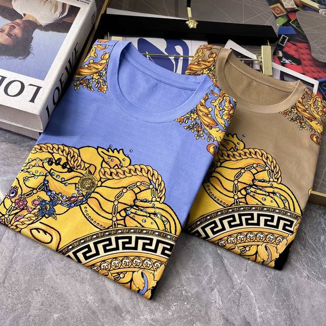 Return/Exchange after Chinese New Year for Versace 2025 Spring/Summer Year of the Snake 5D Printed Short-Sleeve T-Shirt, high-quality custom-made with top-grade double mercerized cotton fabric, 1:1 replica from a top factory, fashionable and high-end brand logo design, soft and delicate to the touch, comfortable and skin-friendly, versatile and casual, looks great on, a must-have for handsome and trendy men. Sizes: M-3XL. Model 175cm, 145kg wears L,