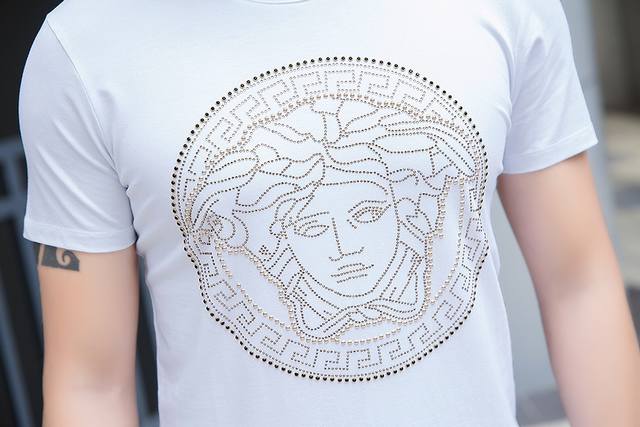 Special Price Versace Newest Men's Short-Sleeve Crew Neck T-Shirt, Department Store Quality. Imported mercerized cotton fabric, extremely skin-friendly and comfortable, with a very delicate feel and excellent texture. The workmanship is meticulous. Perfectly showcasing a three-dimensional look, consistent with the brand's consistent design style, this is an overall very stylish T-shirt, perfect for layering or wearing alone! Sizes: M-4XL