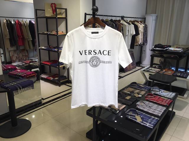 Special Price Versace Spring New Arrival Milan Fashion Week Runway Style Short-Sleeve T-Shirt Imported Custom Mercerized Cotton Fabric, Smooth to the Touch, Sweat-Absorbent and Breathable, Exquisite Logo, Superb Visual Enjoyment, Great Fit, M-3XL. DDD