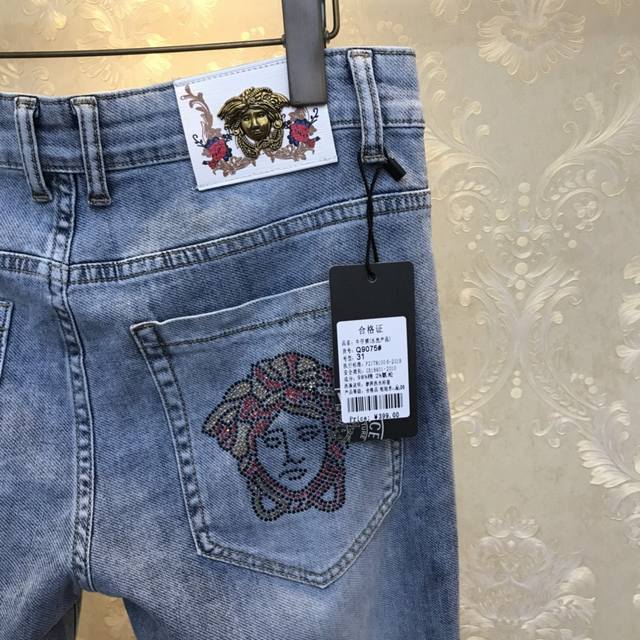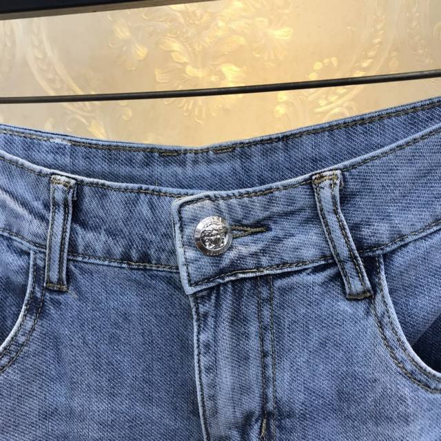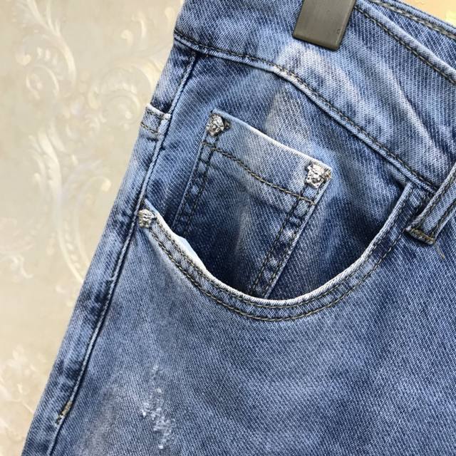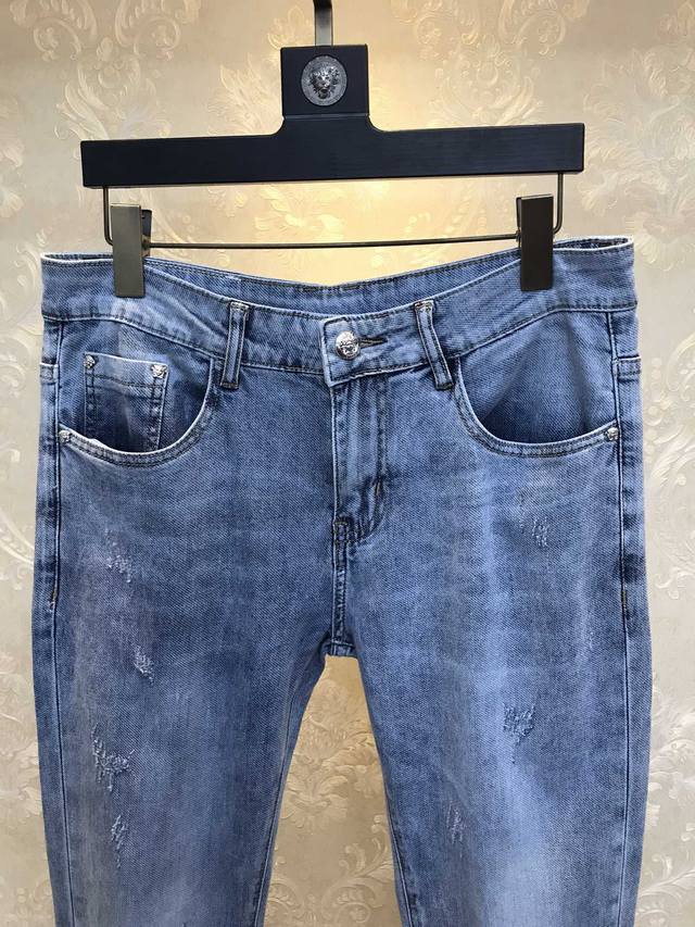 V*Er Versace 2680Ss Spring/Summer Original New Men's Long Jeans, Fashionable Korean Style Slim Fit Jeans - Slightly Elastic Pure Cotton Fabric, Breathable and Soft! This summer's hottest eye-catching item! Novel, fashionable, and unique design! Retail sizes: 28-38 (excluding 35). Please provide your waist measurement when ordering.