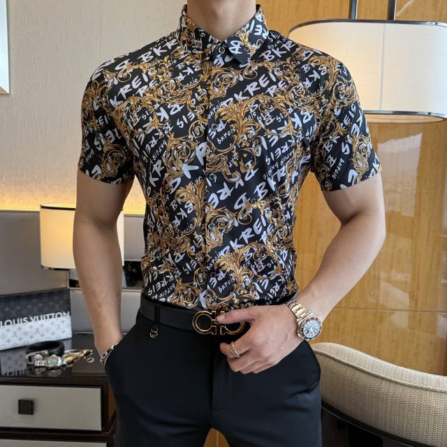 Versace 2025 Spring/Summer Fashion Must-Have Shirt, sourced from a trading company, in perfect condition, considered a high-end item, a predictable bestseller. Made from a high-quality imported cotton blend fabric, masterfully tailored, with unparalleled texture and excellent skin-friendliness. A striking aesthetic design, exquisite craftsmanship, smooth lines, and perfect styling! Effortlessly elevate your fashion sense, highly recognizable, and looks amazing on. Extremely meticulous and precise workmanship, with neat and detailed stitching. Suitable for both business and casual occasions! Retail sizes M-3XL