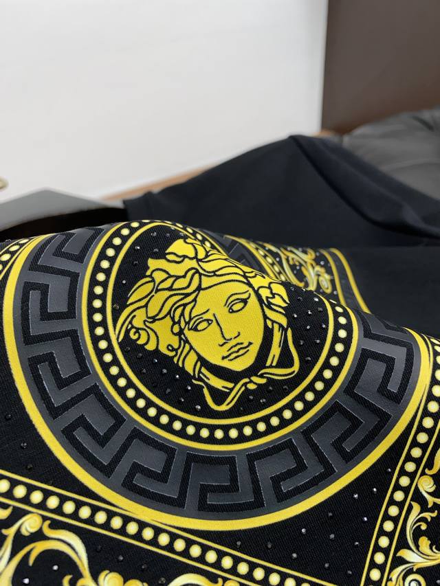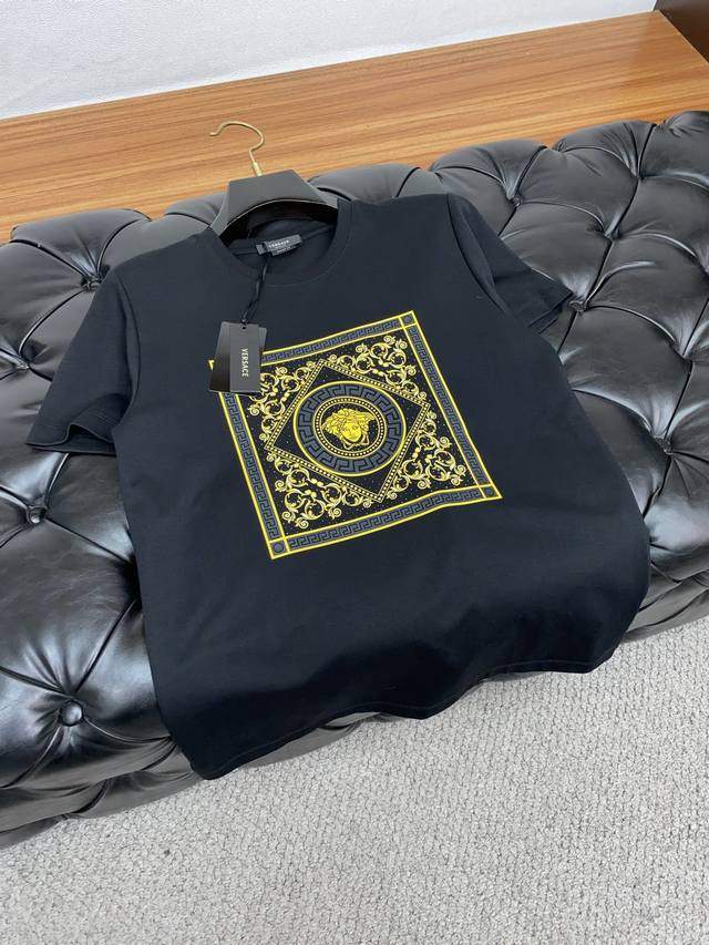 Versace 2025 Spring/Summer runway look, top-quality imported linen and cotton fabric, short-sleeved slim fit, boutique style, fashionable yet luxurious, quality beyond doubt, amazing fit, same style as the official website, sizes M-3XL DDD