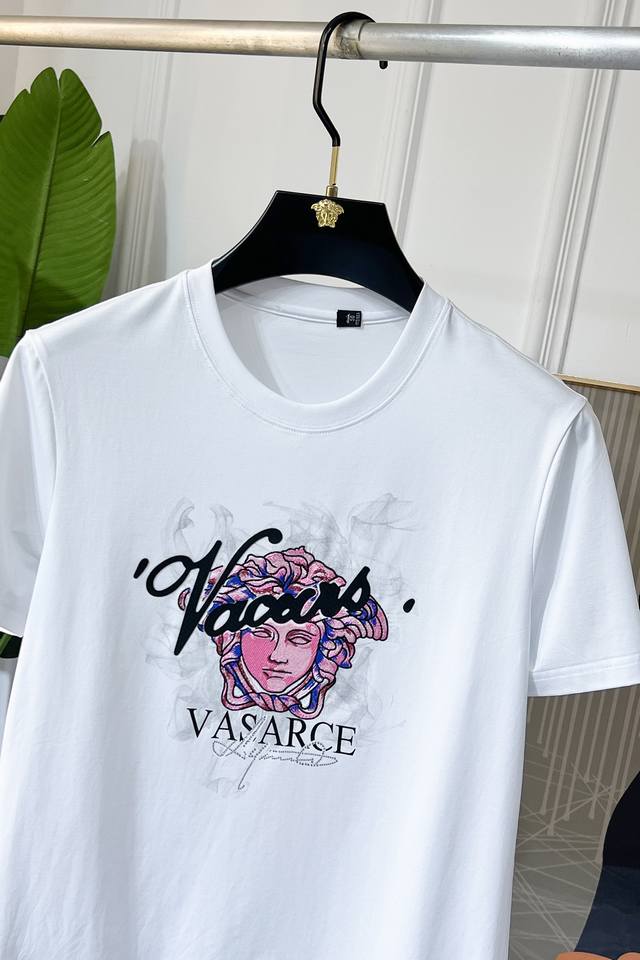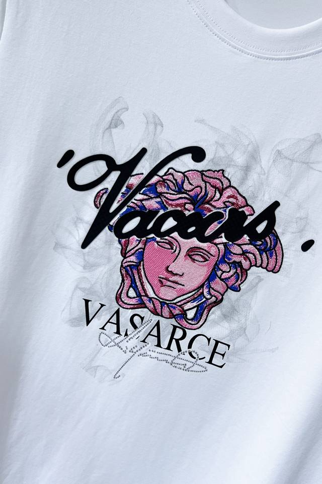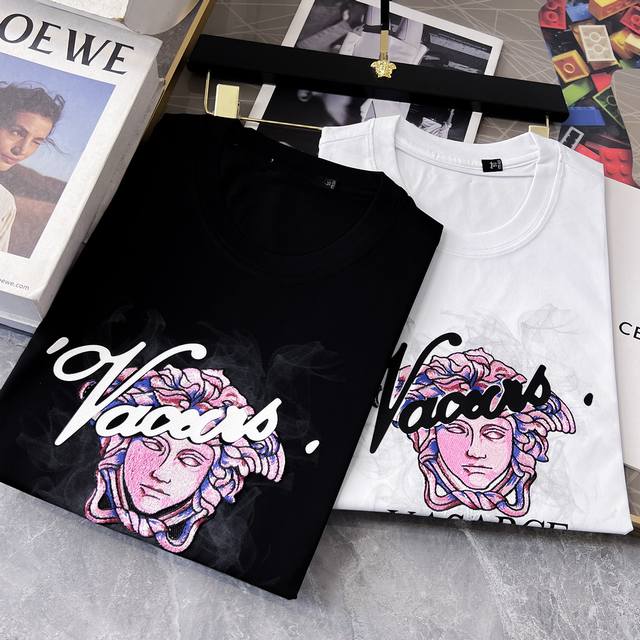 Versace 2025 Spring/Summer Year of the Snake Commemorative Printed Short-Sleeve T-Shirt, Official Website Synchronized, High-Quality Custom Made with Top-Grade Mercerized Cotton Fabric, 1:1 Production from a Top Factory, Fashionable Brand with Heavy Craftsmanship and Logo Design, Soft and Delicate to the Touch, Skin-Friendly and Comfortable, Versatile and Casual, Great for a Stylish Look, A Must-Have for Handsome and Trendy Men. Sizes: M-3XL, Maximum Size: 190 lbs!