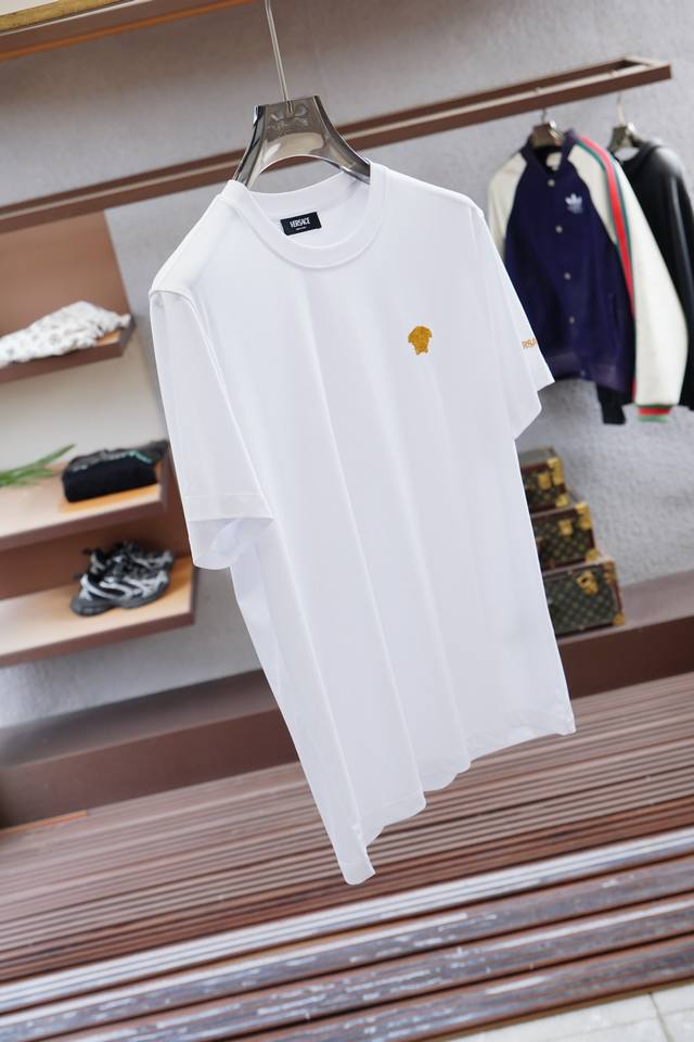Versace - Ddd 25SS Spring/Summer New Arrivals~~~ As the top choice for the new elite, the overall design is quite fashionable. Today, we recommend their 25th Anniversary Travel Series Short-Sleeve T-Shirt, making the overall look more stylish. Seemingly simple, the T-shirt details reflect craftsmanship. The classic logo lettering design on the chest and custom fabric make it comfortable, breathable, and have a good sheen, giving it a high-end and textured feel. The high thread count of the fabric ensures the garment's crispness. Orders in perfect condition are highly recommended for Spring/Summer. Colors: Black, White. Sizes: M-3XL. DDD