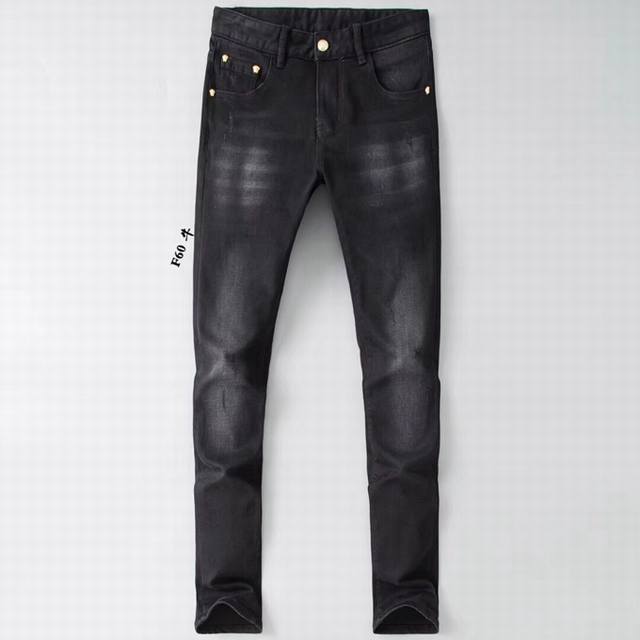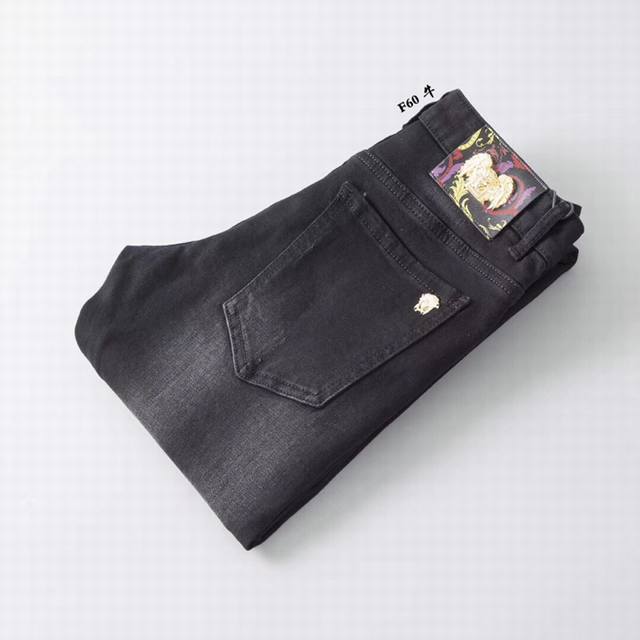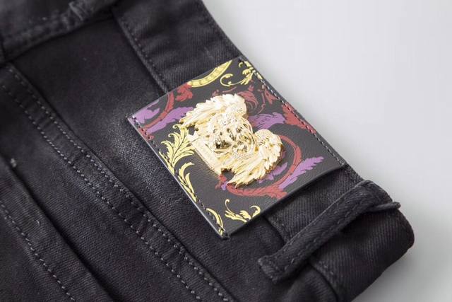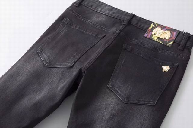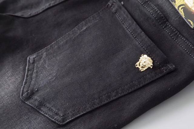 Versace early spring slim-fit jeans are incredibly comfortable, understated yet luxurious, and very classy. The style and cut speak for themselves; they look exquisite on. Made from truly top-quality Turkish cotton, these are truly high-class casual pants. The superior quality is achieved through heavy washing, making them incredibly soft. The straight-leg cut is flattering on all body types and creates a stylish silhouette. The silver embellishment at the waist adds a touch of luxury. Sizes 28-38. DDD