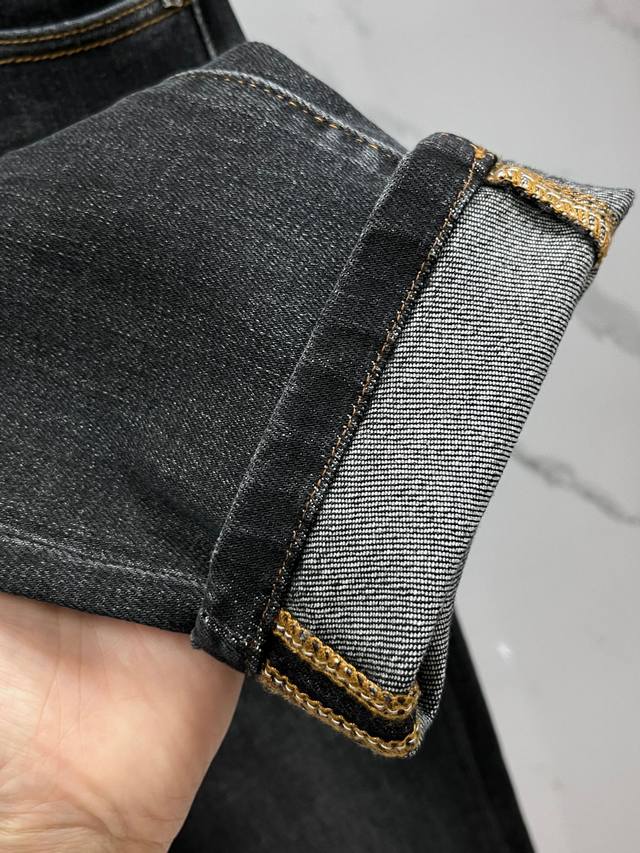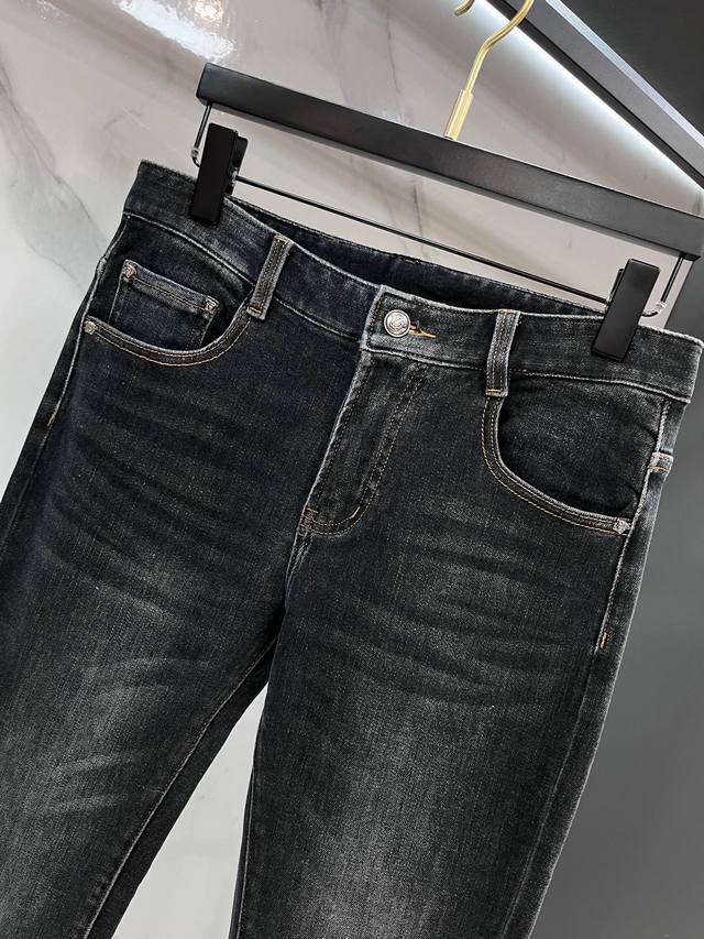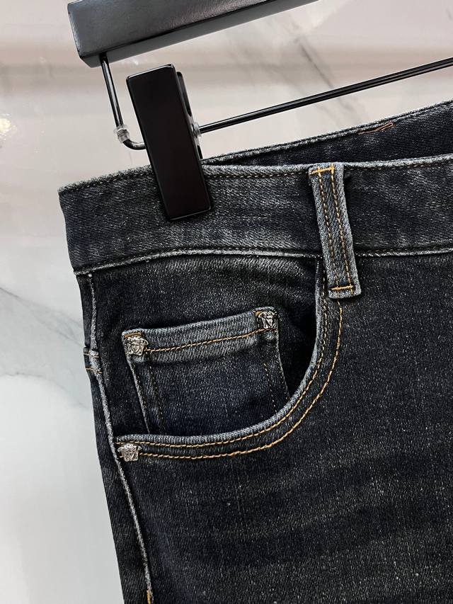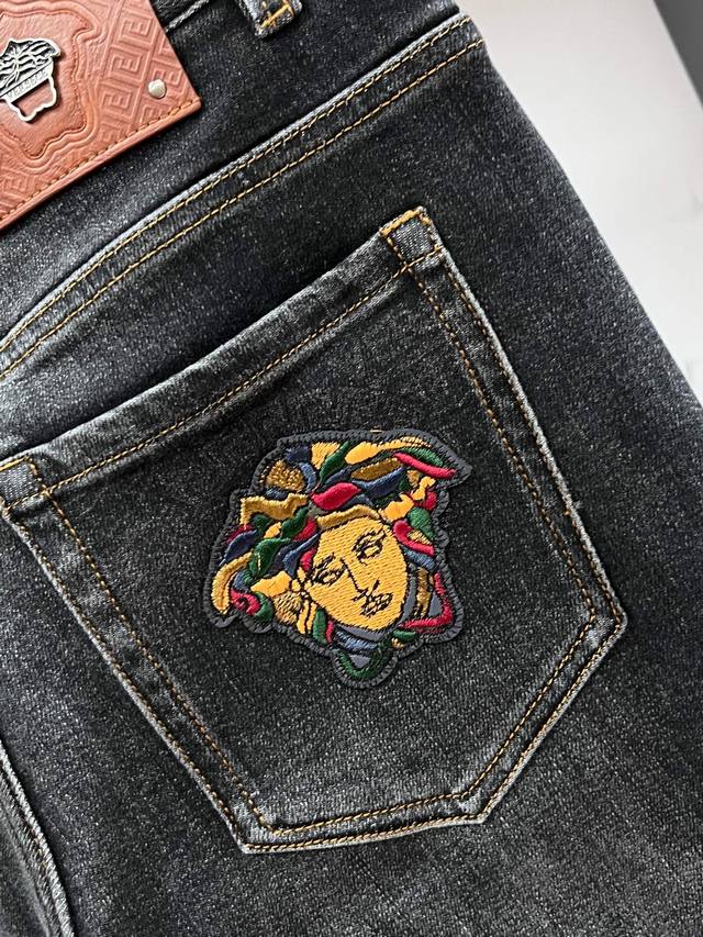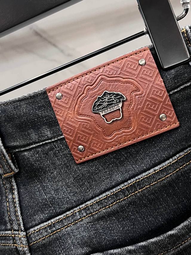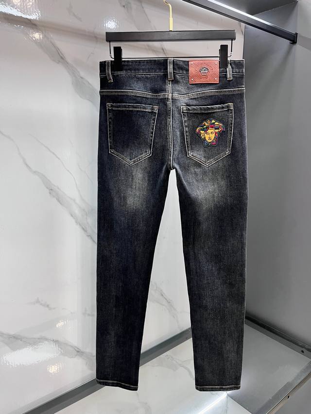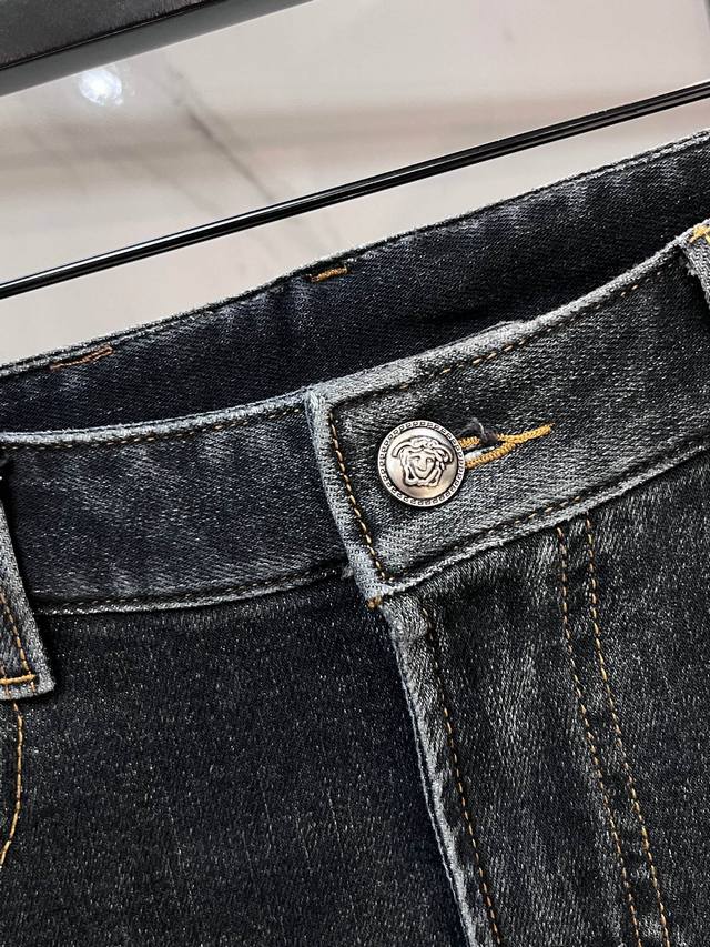 Versace high-end custom-made jeans, 2025 Fall/Winter latest style, available in stores. Original custom-made, customer-supplied hardware and accessories, original quality imported color-fast denim stretch fabric, heavy washing, exquisite workmanship and stitching, excellent fit! Selected item with all three labels. Size: 29-38