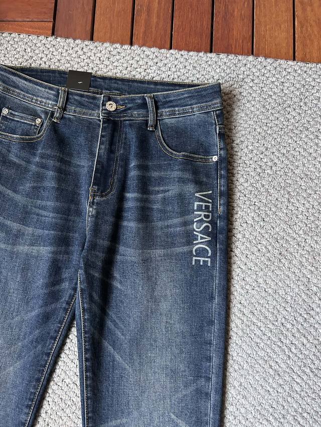 Versace jeans, available simultaneously on the official website and in stores. A top-quality original item, these jeans are incredibly stylish. Made with custom-made original washed denim fabric, featuring a unique design and original hardware accessories. An exceptionally high-end pair, these jeans boast luxurious and exquisite materials and craftsmanship. They look incredibly handsome and stylish when worn. Highly recommended. Sizes: 29, 38.
