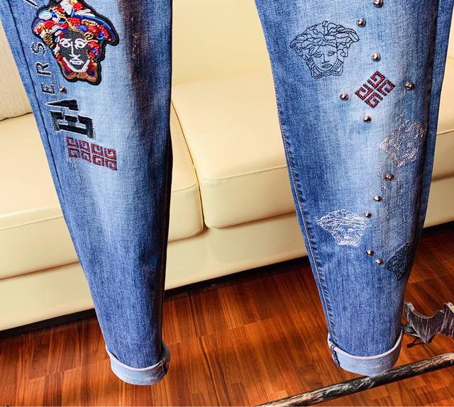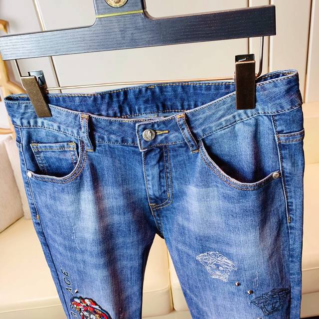 Versace Jeans. Top-quality imported original jeans, crafted with original materials and hardware. Made with custom-made denim fabric, perfectly matching the original. We welcome you to try them on at a boutique before purchasing. A truly high-quality product. Sizes: 28-36.