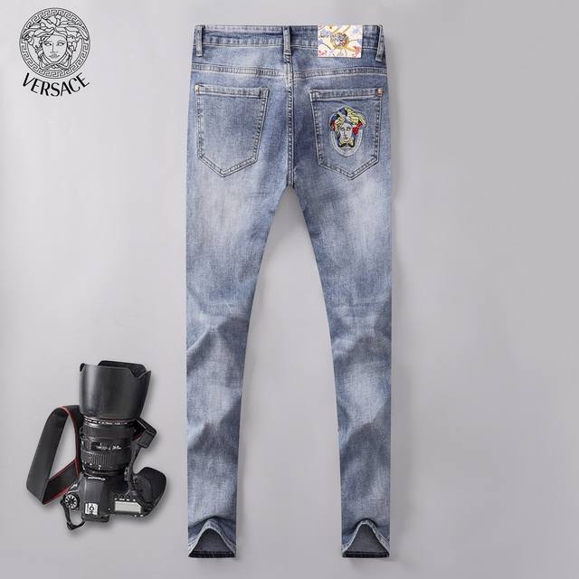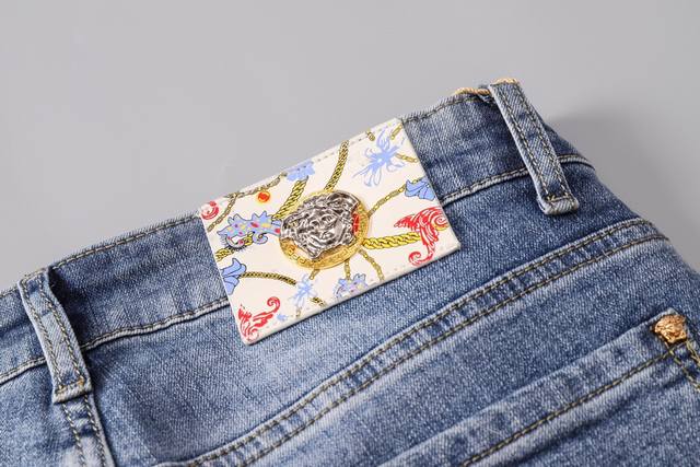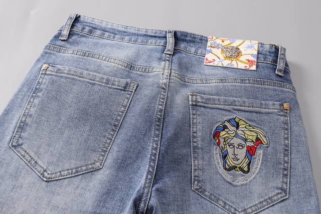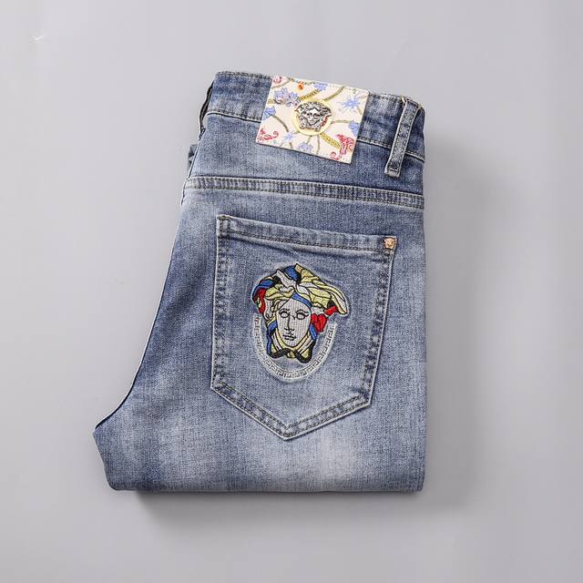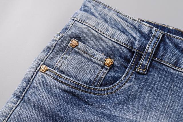 Versace Spring/Summer New Arrivals, the same style worn by top European and American celebrities. Men's distressed jeans, crafted from imported stretch fabric, with exquisite workmanship and details. The slim fit is flattering and suitable for all body types! Easy to match with clothes, simple and stylish, enhancing your overall look and temperament! A must-buy! Sizes: 28, 38, size 35 not available! DDD