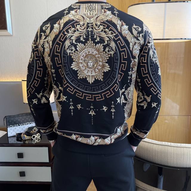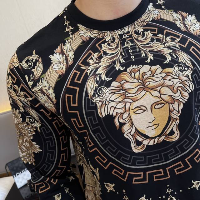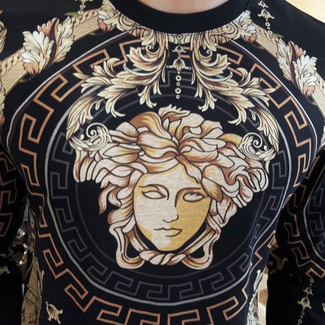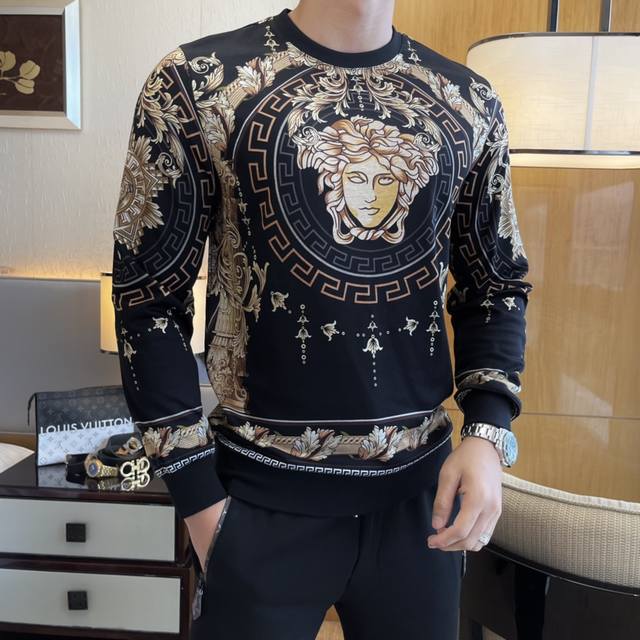 Versace SS Fall Hot New Arrival, Top-Quality Fashionable European-Style Pullover Sweatshirt, a classic piece that comes out every year. Favored and recommended by many celebrities, made from selected high-end European cotton fabric, meticulously crafted with printed details, original hardware and logo design, soft and smooth, with a dense texture! Stylish and fashionable when worn! One of the impeccable must-have styles for fall! Sizes M-3XL. Model 178cm, 145kg, wearing size L (