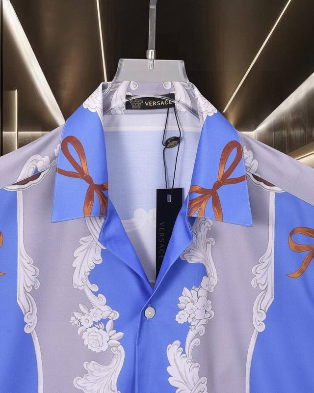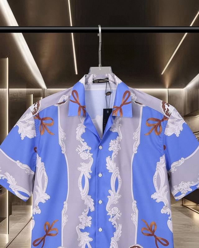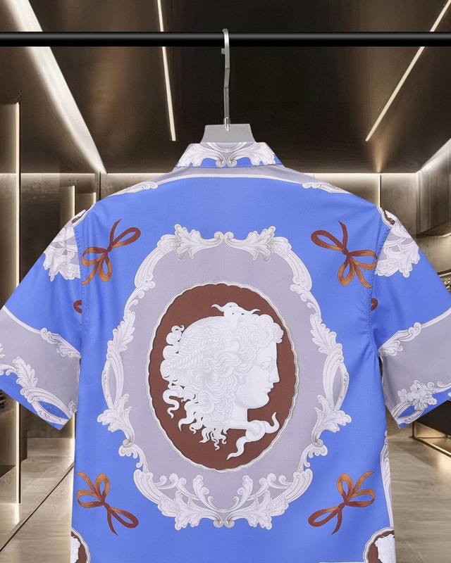 Versace's hottest new item: Medusa-inspired digital print short-sleeved shirt, 2025 Spring/Summer collection. This high-end version features a beautifully printed logo, made with breathable and comfortable custom-made fabric. Meticulously crafted with impeccable details, including custom logo engraving buttons and all three tags. The brand's design elements reflect high quality. The fabric is soft and delicate to the touch, offering a relaxed fit and a fantastic silhouette. Sizes: M-XL.