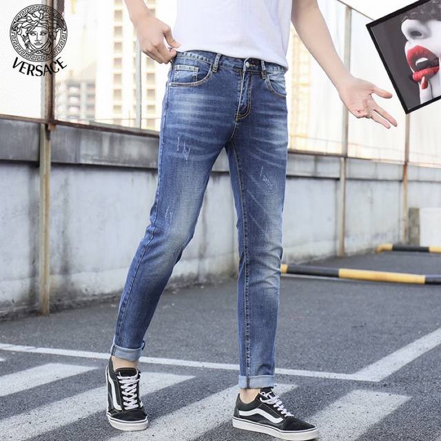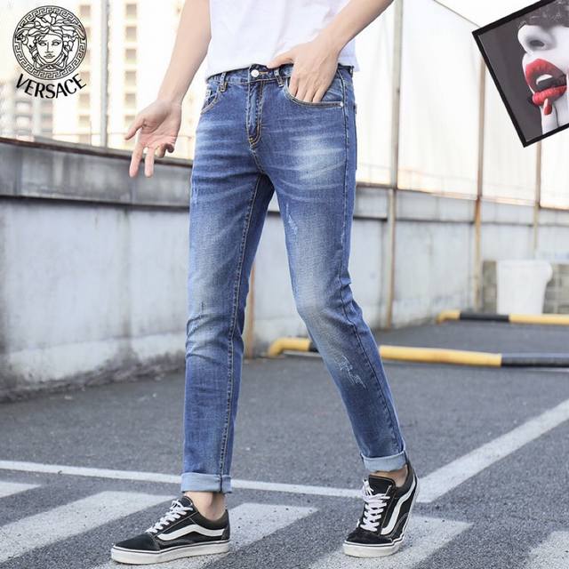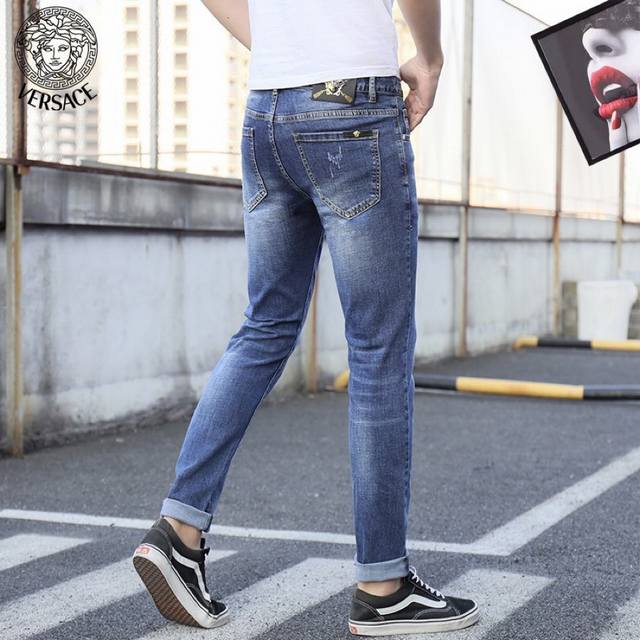 Versace's latest spring collection, available simultaneously in stores and online. Features heavy-duty embroidered patterns on the pants. Custom-made denim wash! Original hardware, fabric, and accessories are all custom-made to a 1:1 ratio! Original factory hardware, 3D tailoring! High-quality replica! Sizes: 28-36. Please provide your waist measurement when ordering.