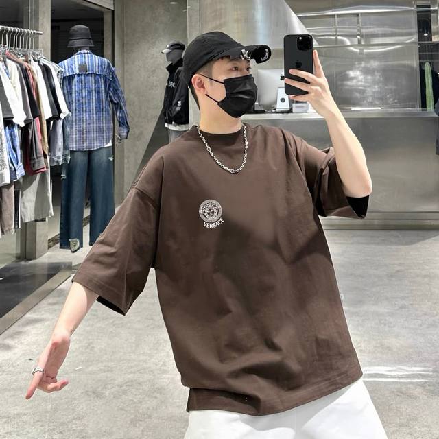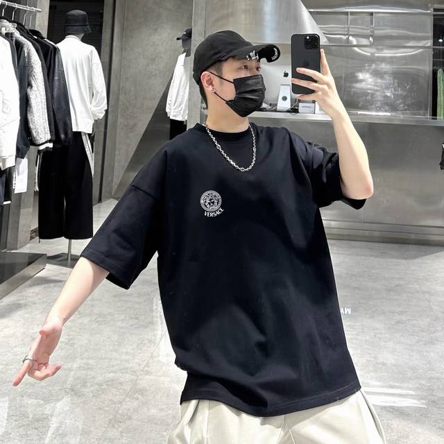 Versace's new basic short-sleeve top is of genuine original quality! The fabric