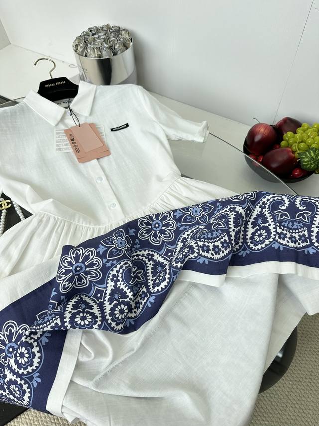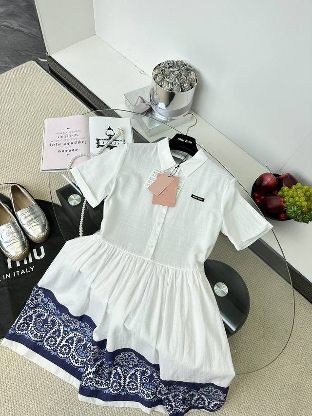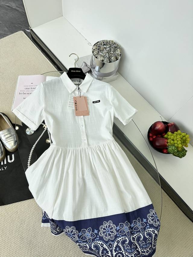 25 Early Autumn Miu Miu Lapel Waist Flower Short Sleeve Dress 1 Size SML
