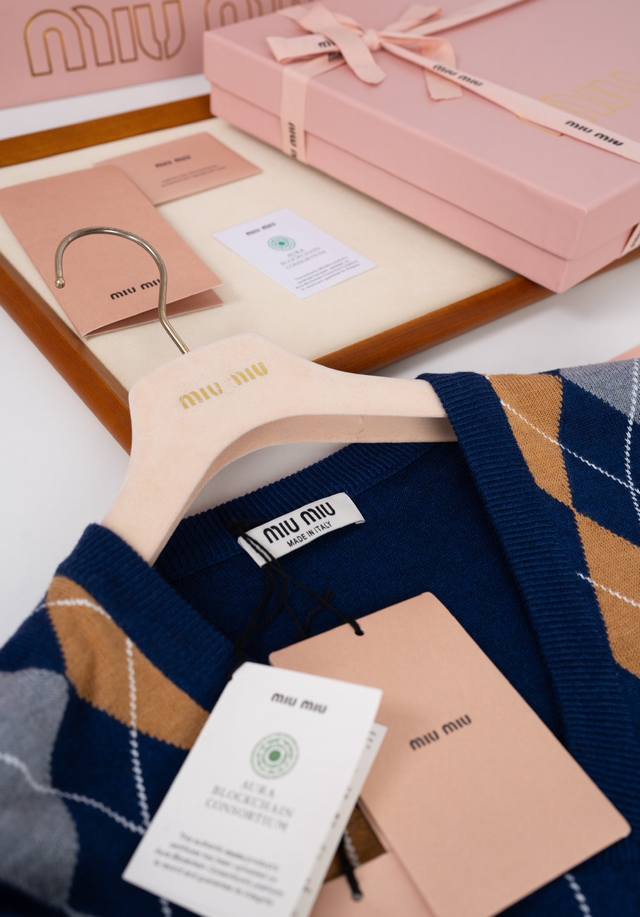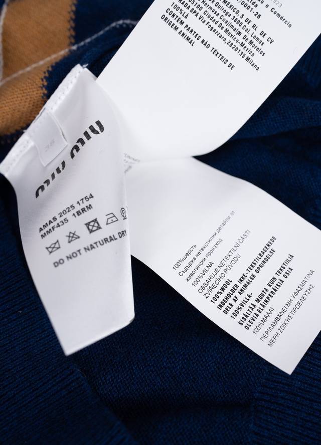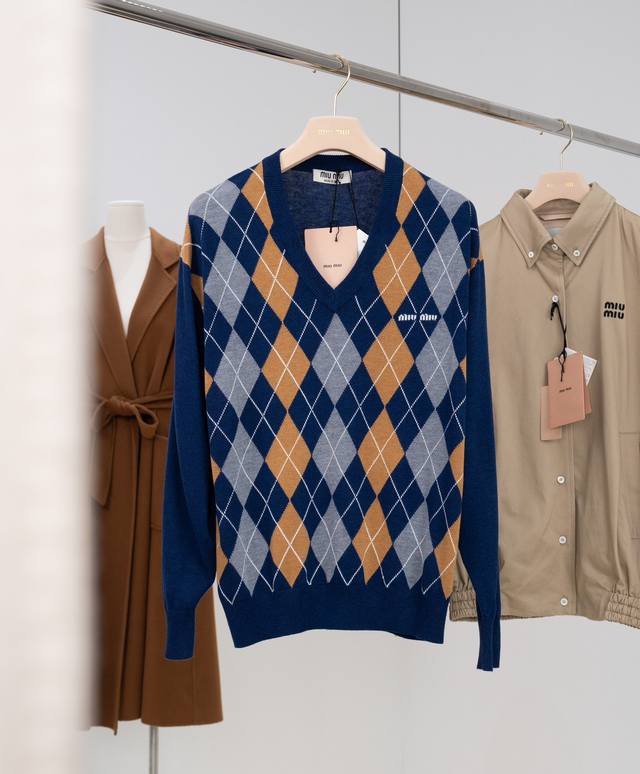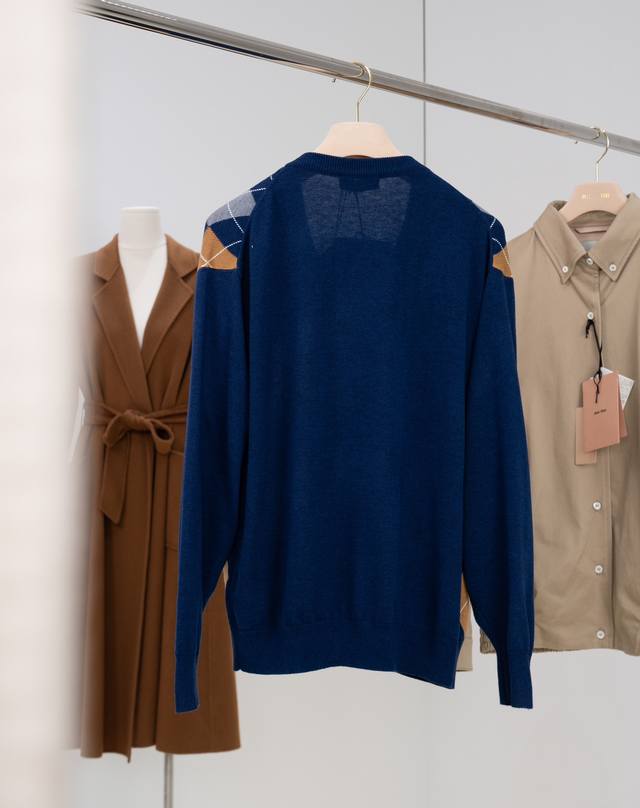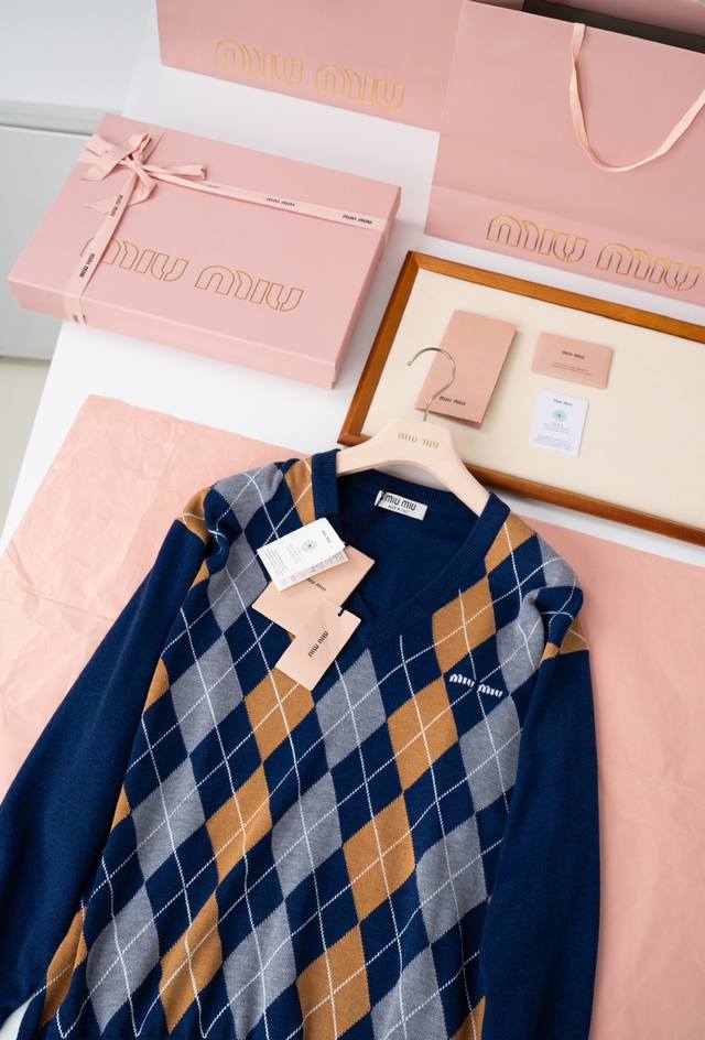 25Ss new Mi Umiu V-neck wool sweater adopts diamond stitching, contrasting lines, fine texture and layered beauty, bringing a vivid visual effect. The Muumuu brand logo is embedded on the chest, highlighting the brand's casual and fashionable style. It is made of delicate wool material, which is skin-friendly, soft and drapey. It is extremely comfortable to wear close to the body. The dropped shoulder sleeve design makes you look slim and elegant. The upper body instantly becomes a college style. It is very good to wear it as an outer layer or alone, showing vitality and elegance. Color: Navy Blue Material: 100% wool Size: 36 38 40 Size recommendation: Wear 36 if you weigh 110 pounds, wear 38 if you weigh 110-125 pounds, and wear 40P if you weigh 125-140 pounds. Comes with a full set of exquisite gift box + gift bag + ribbon + moisture-proof paper + card. Do not pack -30