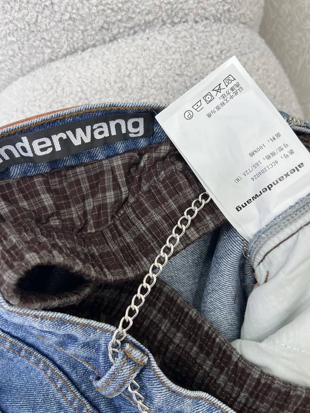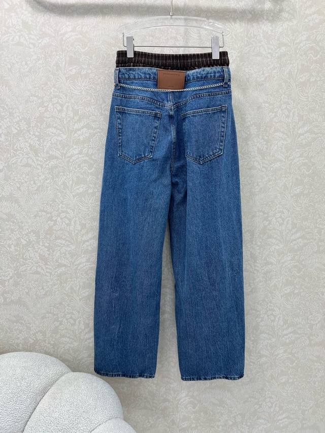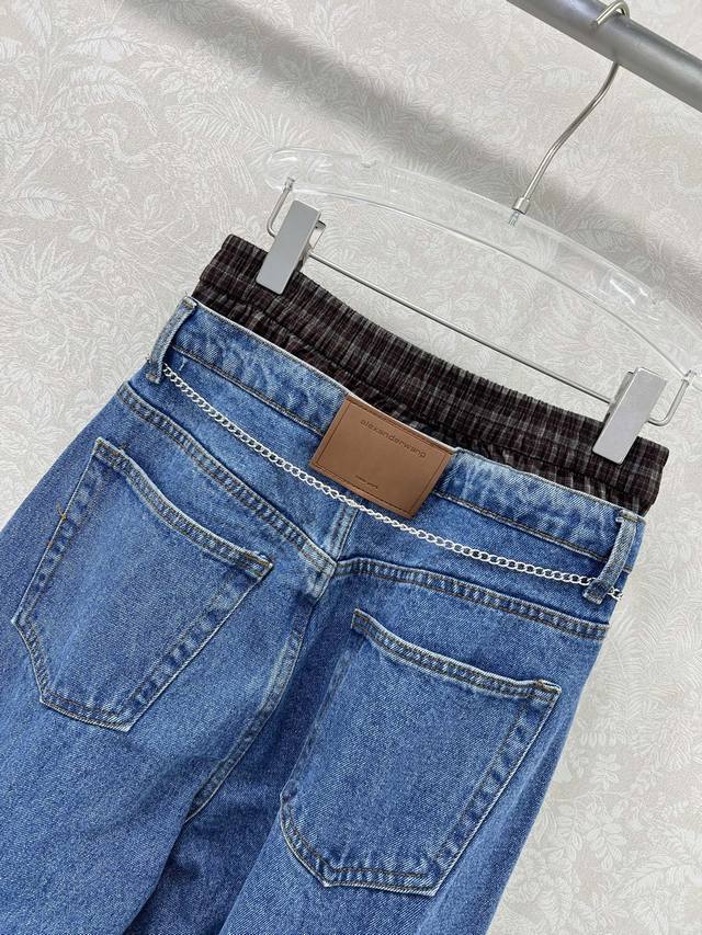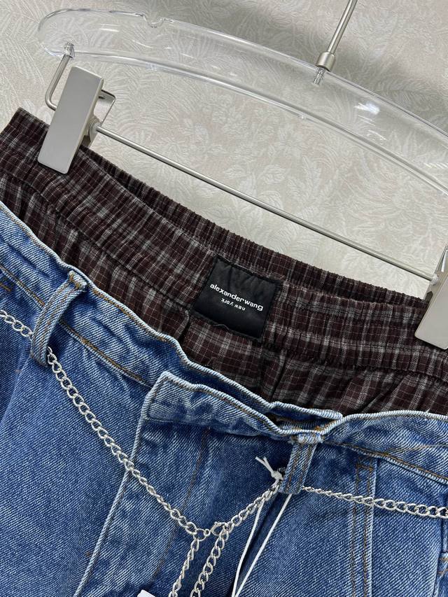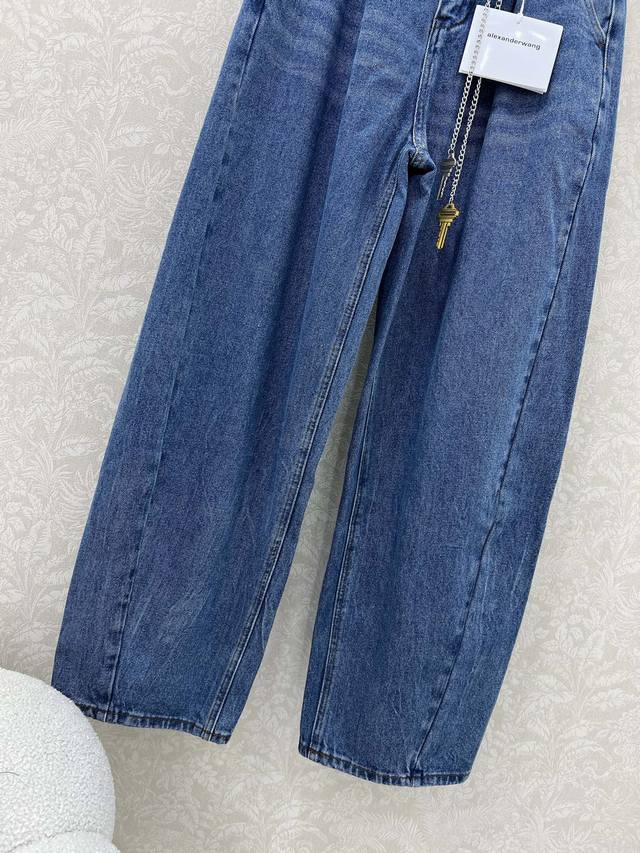 Alexander*R Wang 25 new double-waisted scimitar jeans with custom waist chain. Made from high-cotton fabric, the fabric is delicate, soft, and rich. The tight weaving technique imparts a twill texture to the fabric. The sculpted, three-dimensional silhouette creates a flattering, hip-lifting look. The mid-rise waistband elongates the legs. The diamond-embellished detailing is exquisite, making it a stylish and versatile pairing with a variety of outerwear styles. Solid color, size 3. Smlb.