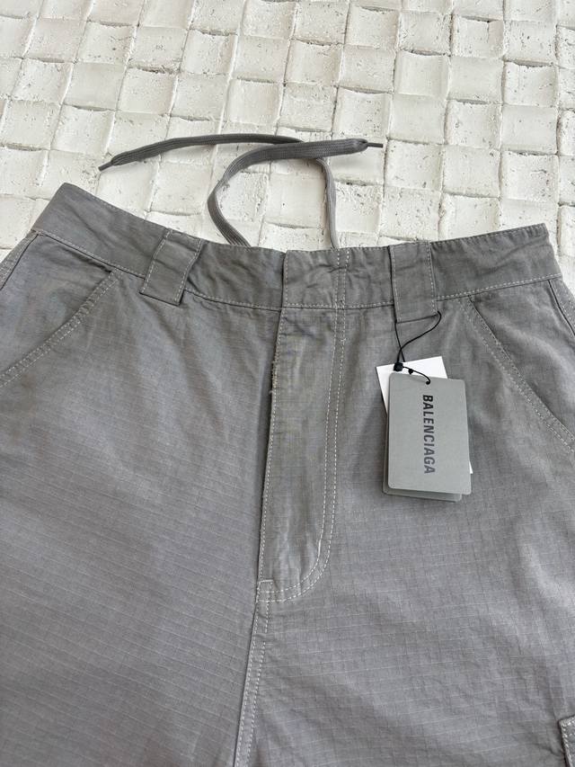 Balenciaga* Paris 25Ss new Loop cement grey distressed work shorts