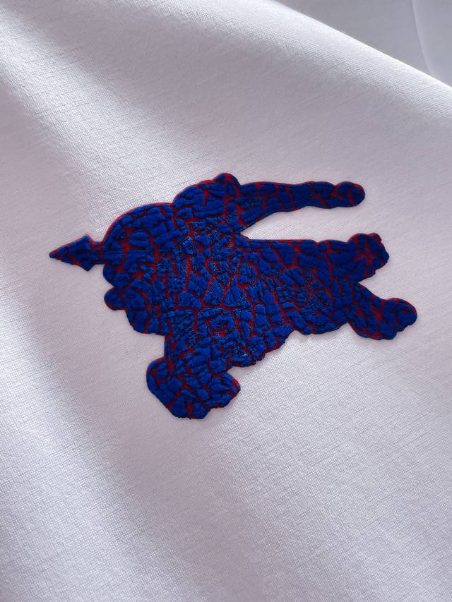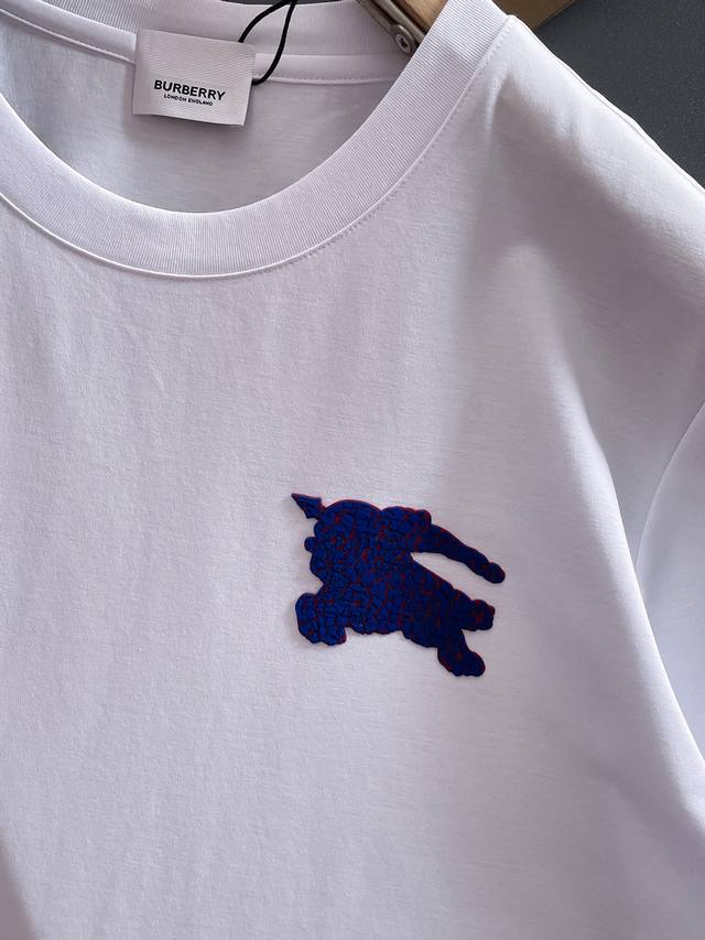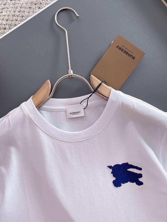 Burberr* 2025 Spring/Summer new collection, featuring a classic Burberr knight T-shirt. The iconic blue knight embroidery on this blues-inspired T-shirt is both refined and instantly recognizable, reflecting the brand's rich history and unique style. The fabric is soft and skin-friendly, offering understated luxury and a must-have. Sizes: M-3Xl