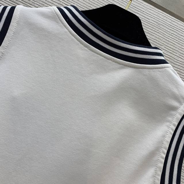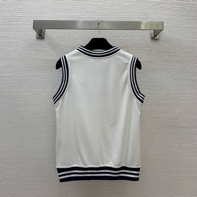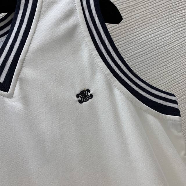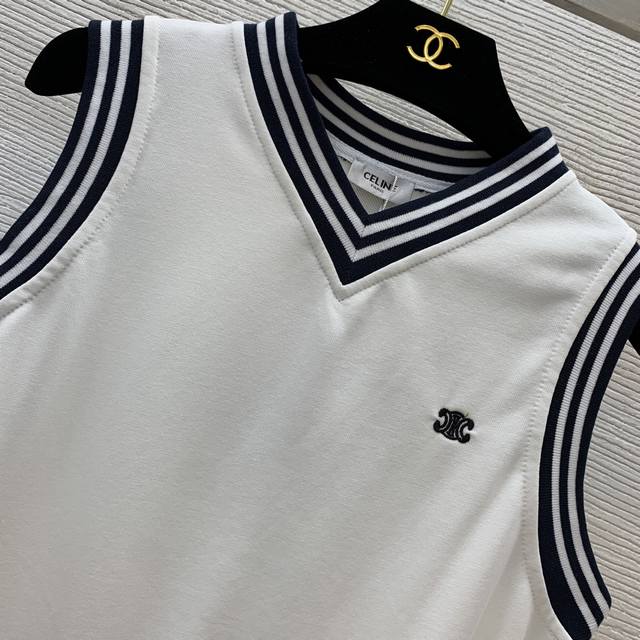 Celin* new style college style age-reducing contrast color striped edge thread stitching Arc de Triomphe Logo embroidery small logo fashionable and versatile V-neck sleeveless vest top! Size M: Bust 90, Length 59
