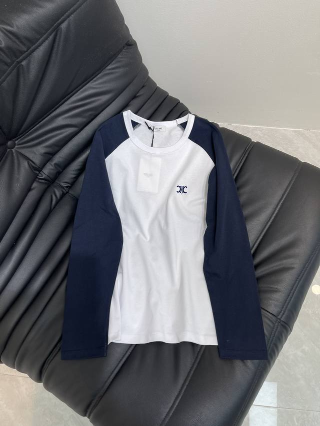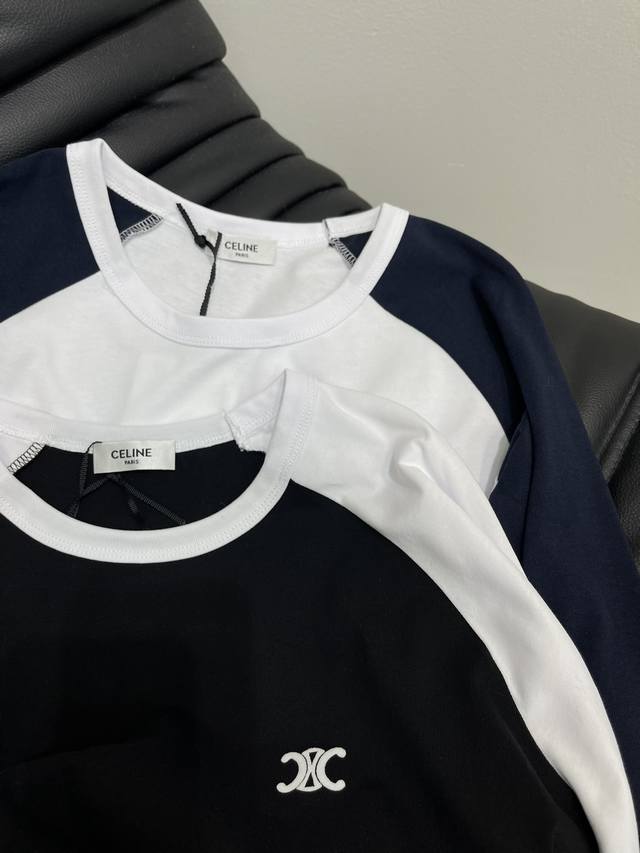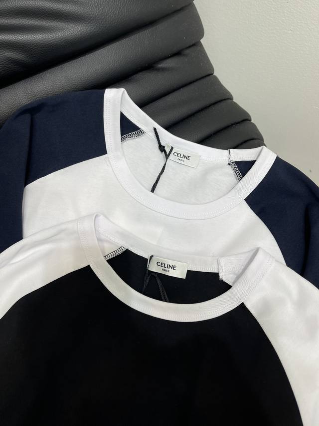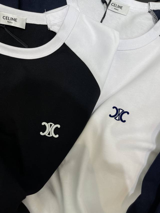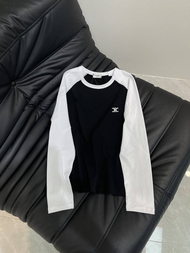 Celin*25's new early fall raglan colorblock flocked logo long-sleeved base layer! A must-have essential, this lightweight fabric features a logo on the chest, a lettered collar, and matching cuffs. The slimming silhouette instantly transforms you into a cute girl. This custom-made pure cotton top is soft and skin-friendly, even in summer, it looks great paired with shorts. Sml Aa.