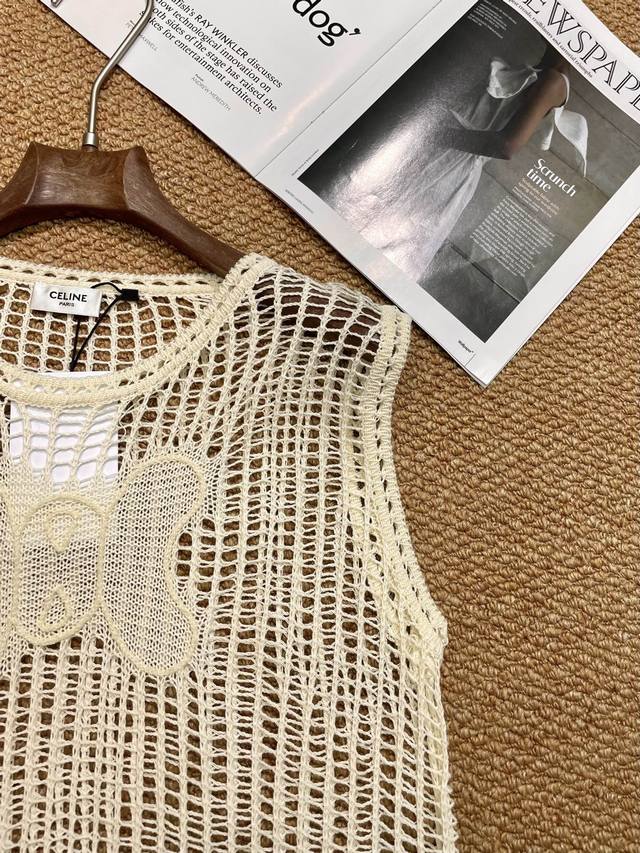 Celine's new knitted vest, with a retro yet sophisticated twist, pairs perfectly with jeans for a vintage American chic look, or a short skirt for a sweet, cool chick look. * Style: 779* Color: Black, Beige* :