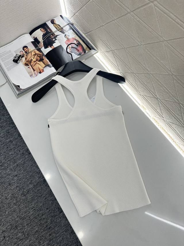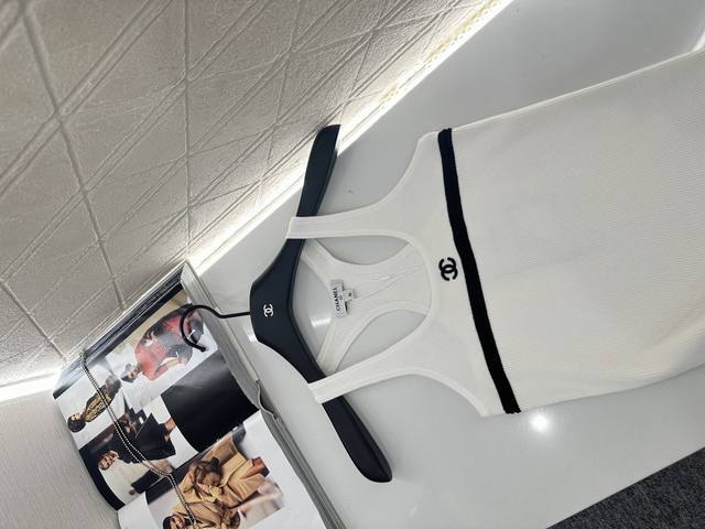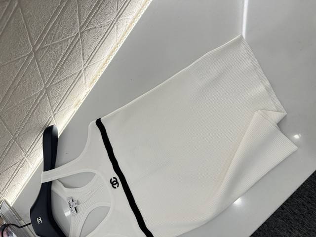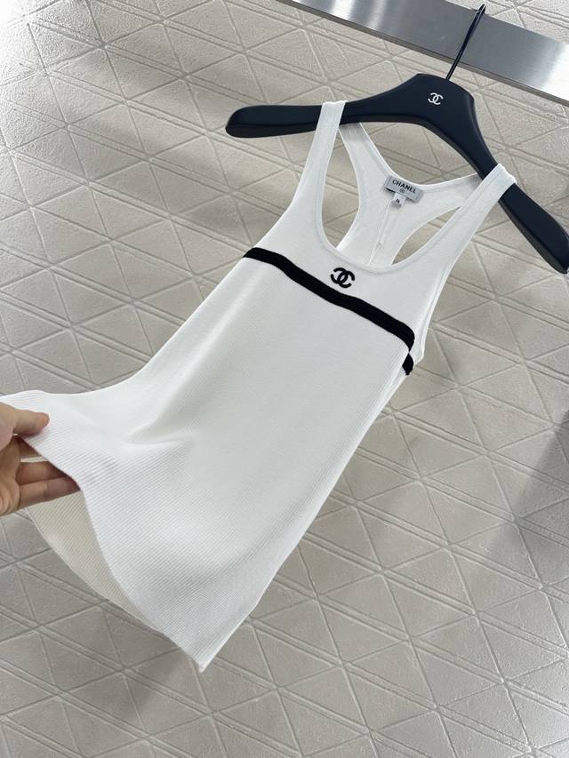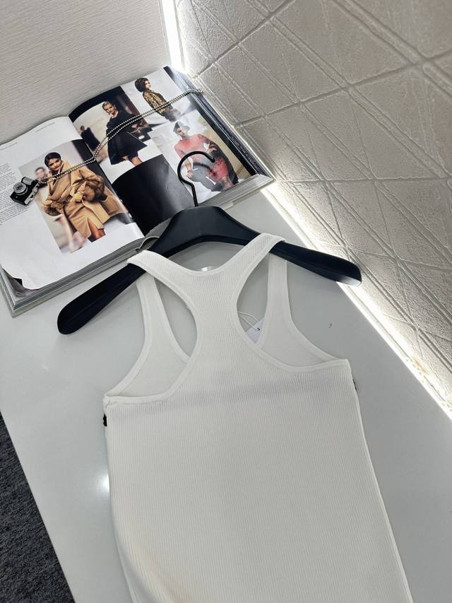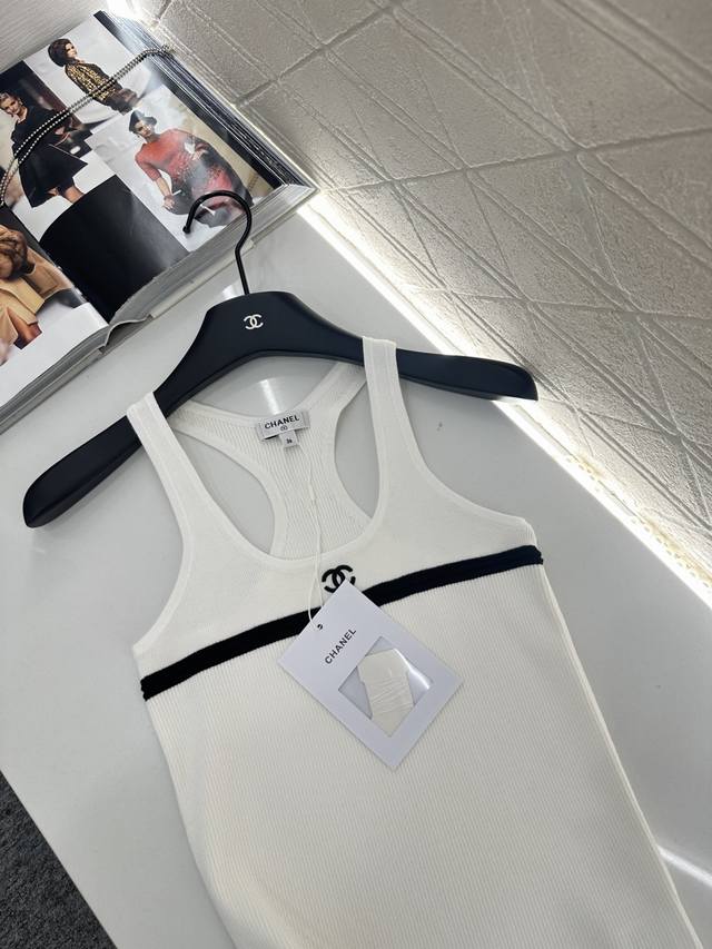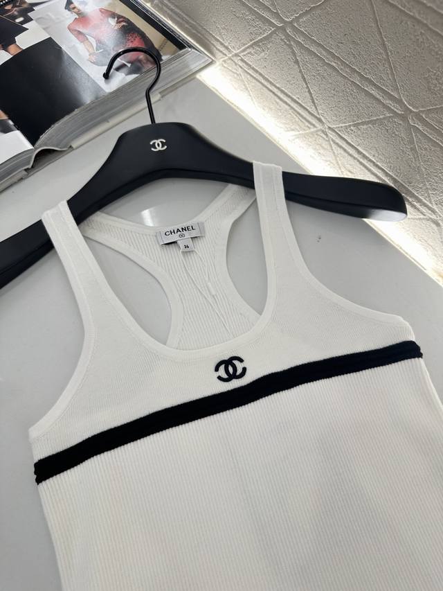 Chane*2025 New Arrival. A versatile, essential knitted vest, custom-woven from Yb cashmere yarn for a comfortable, breathable, stretchy crew neck. I-shaped shoulder straps create a rounded neckline, complemented by the double C logo on the chest, highlighting a sophisticated look. Vertical ribbed texture throughout, with threaded edging. A lightweight, slim fit for a flattering effect, showcasing a relaxed, effortless aesthetic. Perfect for wearing alone or layering, this is a top choice for fashionable wear in all seasons. Custom-made fabrics and accessories are available in two colors: 36, 38, and 40.