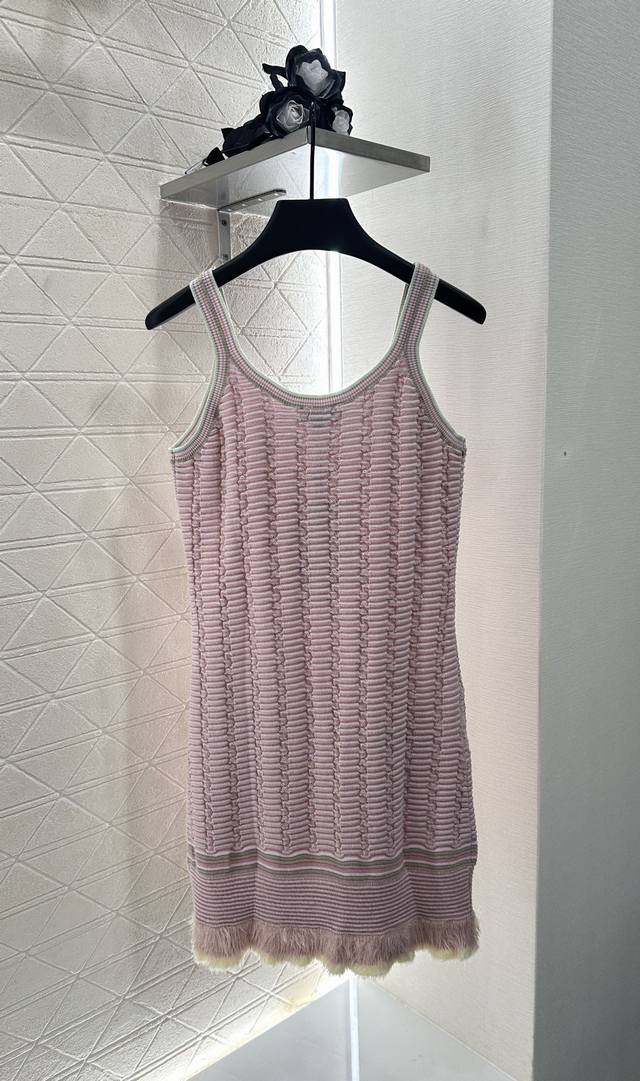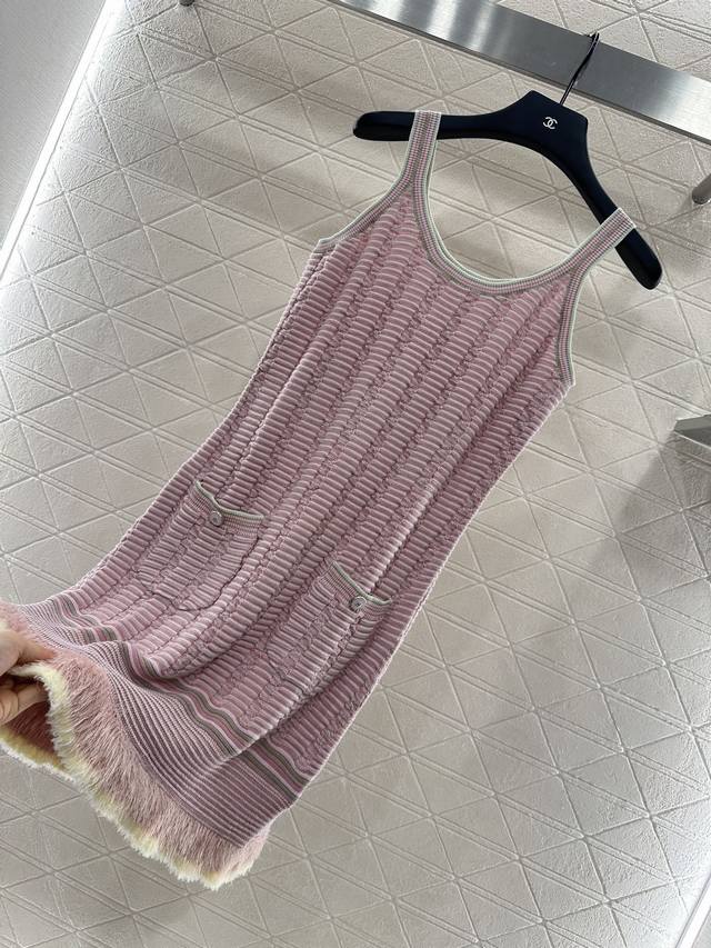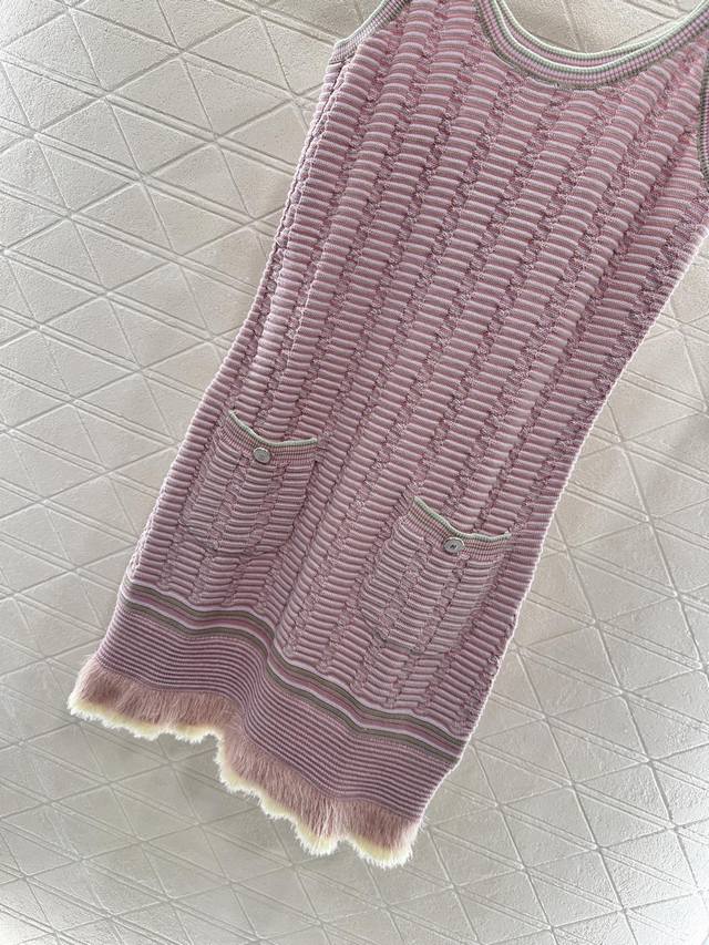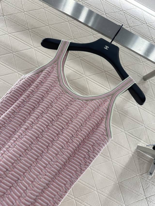 Chane*2025 New Arrival: Contrast-Color Knitted Slip Dress. Custom-made with Yb w