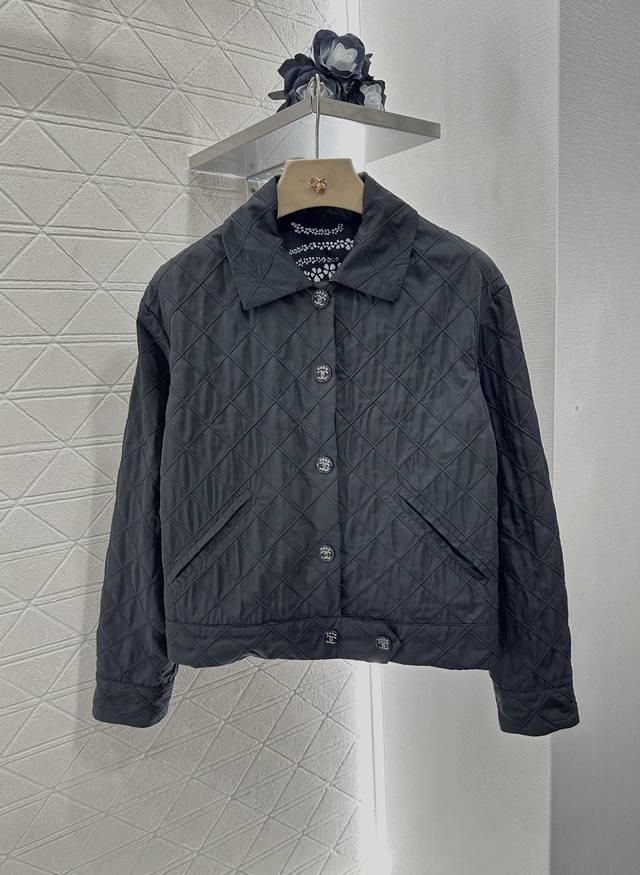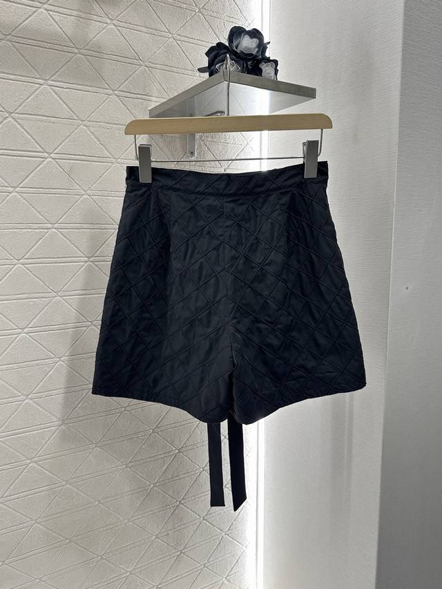 Chane*2025 new arrivals. Custom lapel quilted jacket and shorts set. Made from imported YB blended silk and cotton, comfortable and in excellent condition. Lapel jacket design with diamond embossing throughout. Large pockets on both sides for added practicality. Iconic rhinestone double C logo embellishment on the front, showcasing the brand's philosophy. Adjustable buckle detail at the hem for controllable tightness. Lightweight and stylish. Paired with the same series of quilted shorts. Satin ribbon at the waist for a stylish belt. Perfect for early autumn. Slightly curved for a more three-dimensional look. Fits snugly and stylishly. Custom fabrics and accessories. Look for the high-end 36, 38, 40 jacket and shorts.