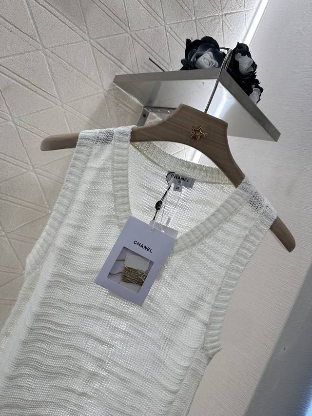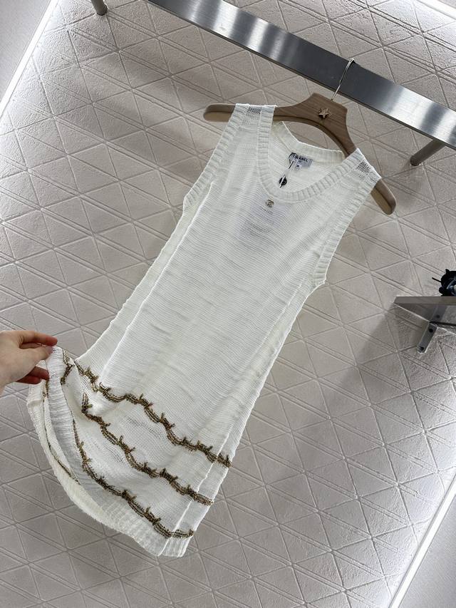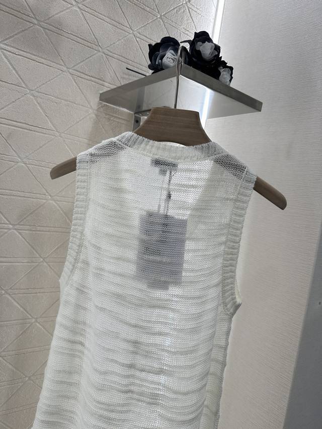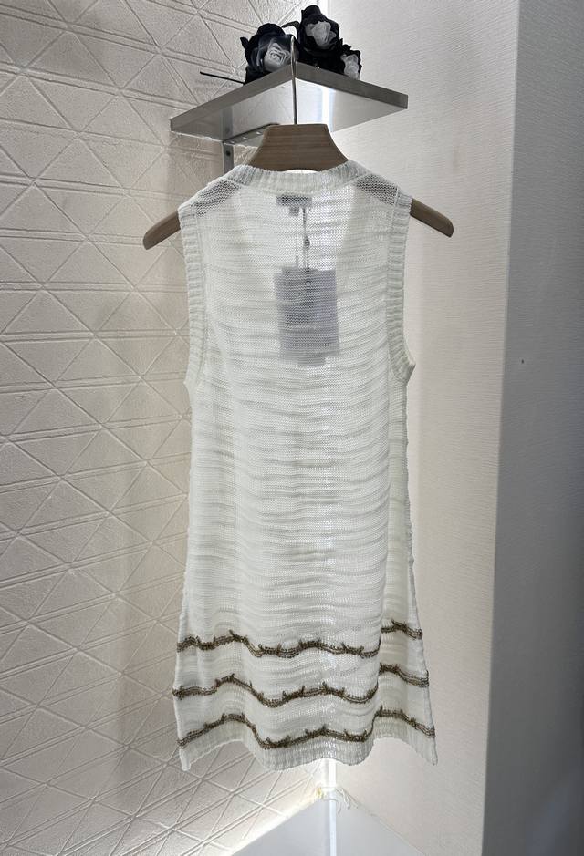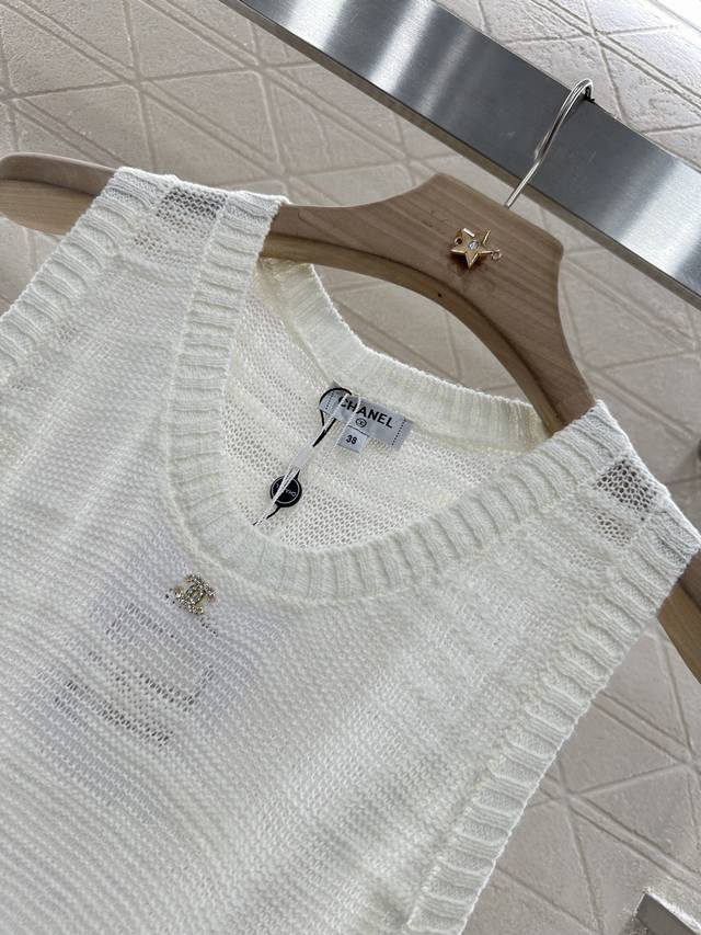 Customized Yb wool yarn weaving Soft, skin-friendly, comfortable and stylish Vest dress tailored with appropriate neckline adjustment Revealing skin texture Thin and slightly transparent Overall beautification Head-shoulder ratio makes you look slimmer Black and white are available Gold thread embroidery on the hem presents triple contrasting colors Strong retro style Rhinestone double C logo decoration on the chest highlights taste Slim fit elastic version highlights the figure Elegant temperament Easy to control for daily travel or parties Customized surface and accessories Look for the high version 2 colors 36 38 40
