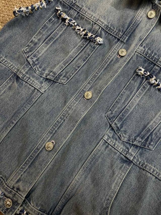 Chanel's new denim jacket, I'd call this one my "master key to style!" The distressed wash finish gives it a vintage feel, and the dropped shoulders are slimming and flattering. It's stylish enough to wear alone or layered. Pair it with shorts for a chic chic look, or a long skirt for a sophisticated vibe! * Style: 1026 * Color: Denim Blue * :