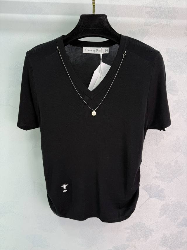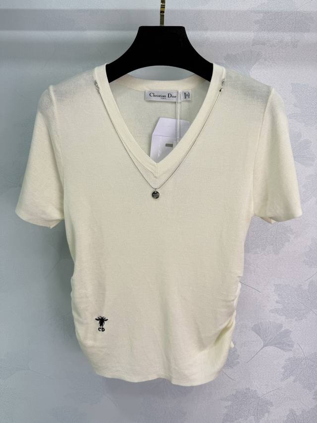 Dio* 2025 Spring/Summer new V-neck top. The V-neck design is slimming, with subtle pleats on the sides. Paired with a small pendant necklace, it's a playful, youthful, and youthful look. Perfect for everyday wear or casual get-togethers! Available in 2 colors and 3 sizes. Sml T226B.
