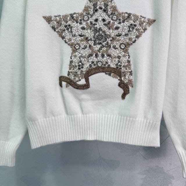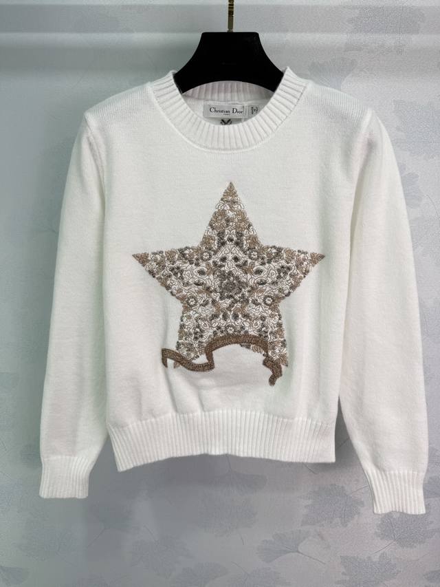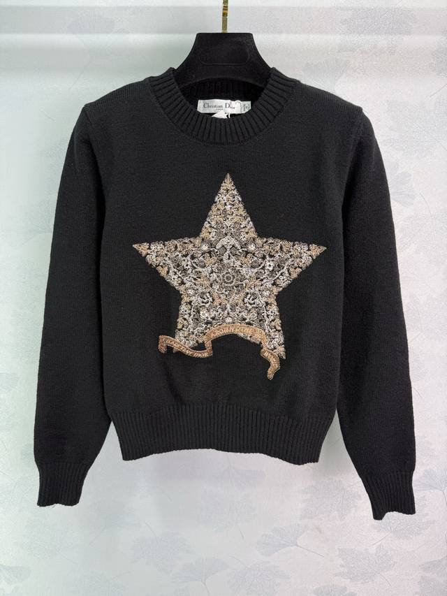 Dio* 25 classic five-pointed star embroidered sweater! Superb quality! Beautifully crafted with star embroidery. A must-have for every woman! Luxurious and sophisticated, this versatile piece features a classic round neckline and a youthful, youthful silhouette. Available in 3 sizes (Size S-L) and 2 colors. T226B.
