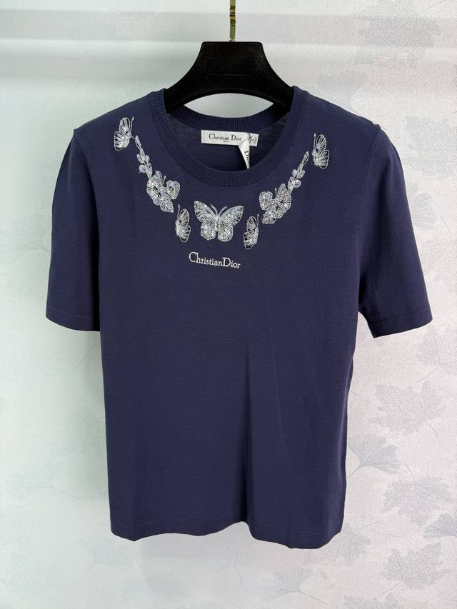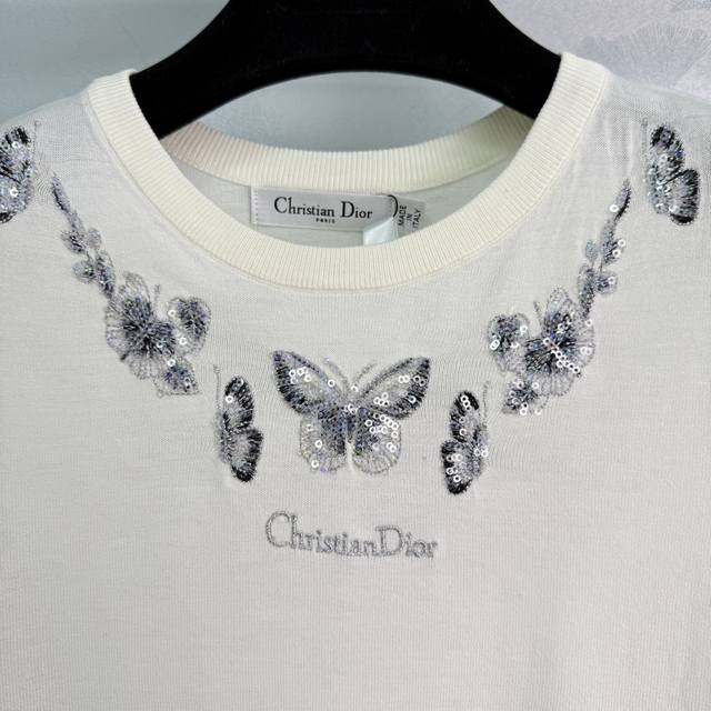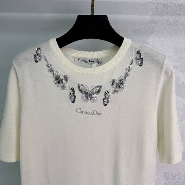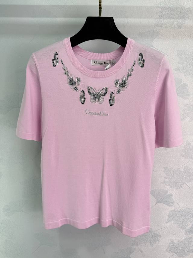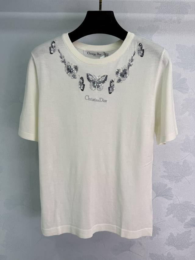 Dio*25 Spring and Summer new butterfly sequin short-sleeved knitted top with exq