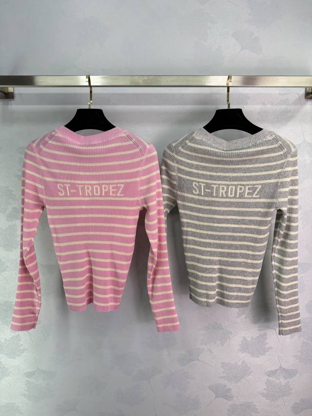 Dio*'s latest 2025 Early Fall collection features a classic striped knit long-sleeved sweater. Made of imported materials, this sweater is breathable, comfortable, and stylish. Embroidered logo detailing highlights the brand's signature logo. A versatile, regular fit is available in 4 colors and 3 sizes. Sml T226B.
