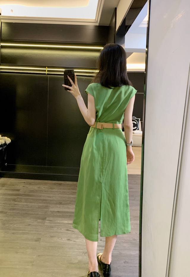 Real shot of classic simple lady temperament dress fashionable and comfortable not picky, beautiful upper body ~ hot sale, Sml XL fabric: silk linen S size bust 92 shoulder width 43 waist 78 skirt length 116 each size bust waist difference 4 cm, length shoulder width difference 1 cm, and so on
