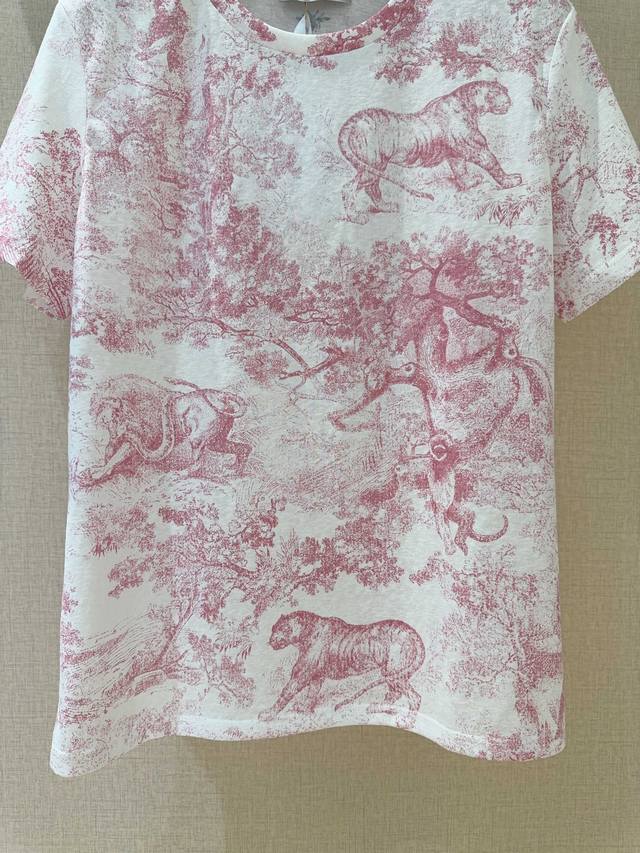 animal jungle print round neck short-sleeved T-shirt. Made of cotton and linen blended plain knitted fabric, it is full of jungle animal patterns, which makes it fashionable. It is cool and eye-catching in summer, and the loose version is suitable for everyone to wear in summer.