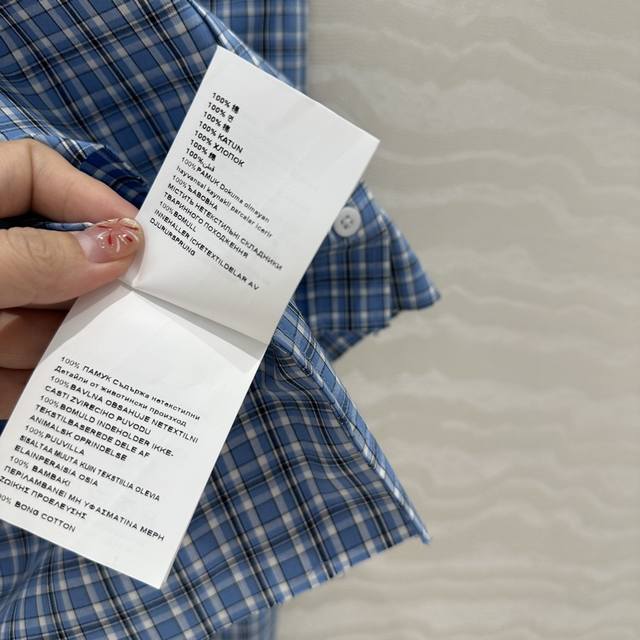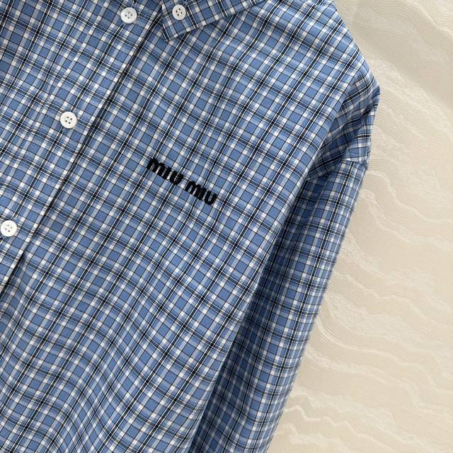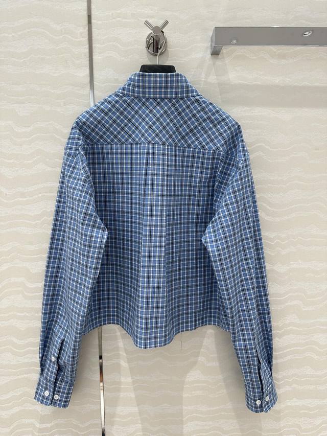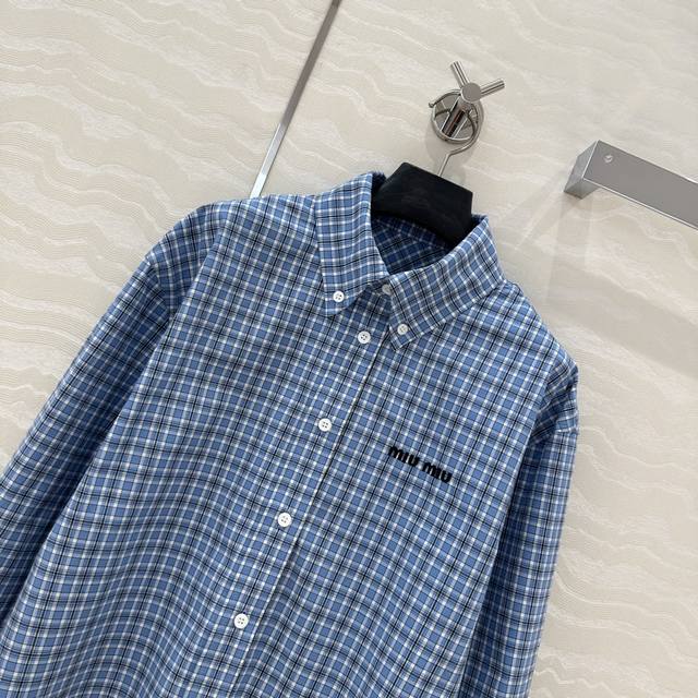 Exclusive first release of original quality Miu girl outfit! Intellectual college style new blue plaid short shirt! Imported custom-woven fine yarn-dyed plaid pure cotton shirt fabric is light and comfortable! A must-have item for retro college style literary girls! The positioning embroidered letters are low-key and luxurious, and the classic version makes the upper body look slim! Sweet and salty temperament is versatile and not picky! The workmanship quality depends on the details. One color SL size. Big orders are coming! S size: drop shoulder 50, bust 102, length 50,