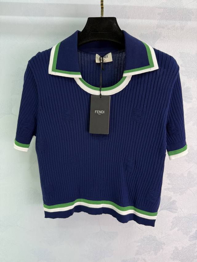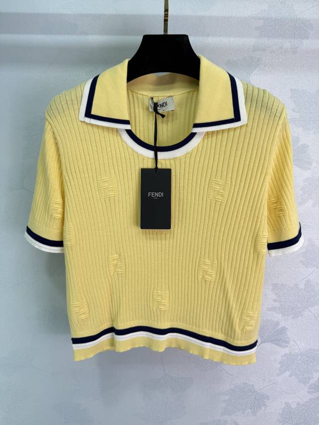 Fe*25 Spring and Summer new two-color knitted Polo shirt, contrasting color border design, vertical knitted fabric, the version is very good, can be matched with pants or skirts! 2 colors 3 sizes Sml T226B