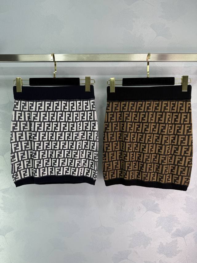Fend* Classic Series! New Fend jersey skirt from the Fend series featuring a classic jacquard pattern. This luxurious custom knit fabric is comfortable, breathable, and stretchy. The slim fit creates a flattering and elegant look! Available in 2 colors and 3 sizes (Sml T226B).